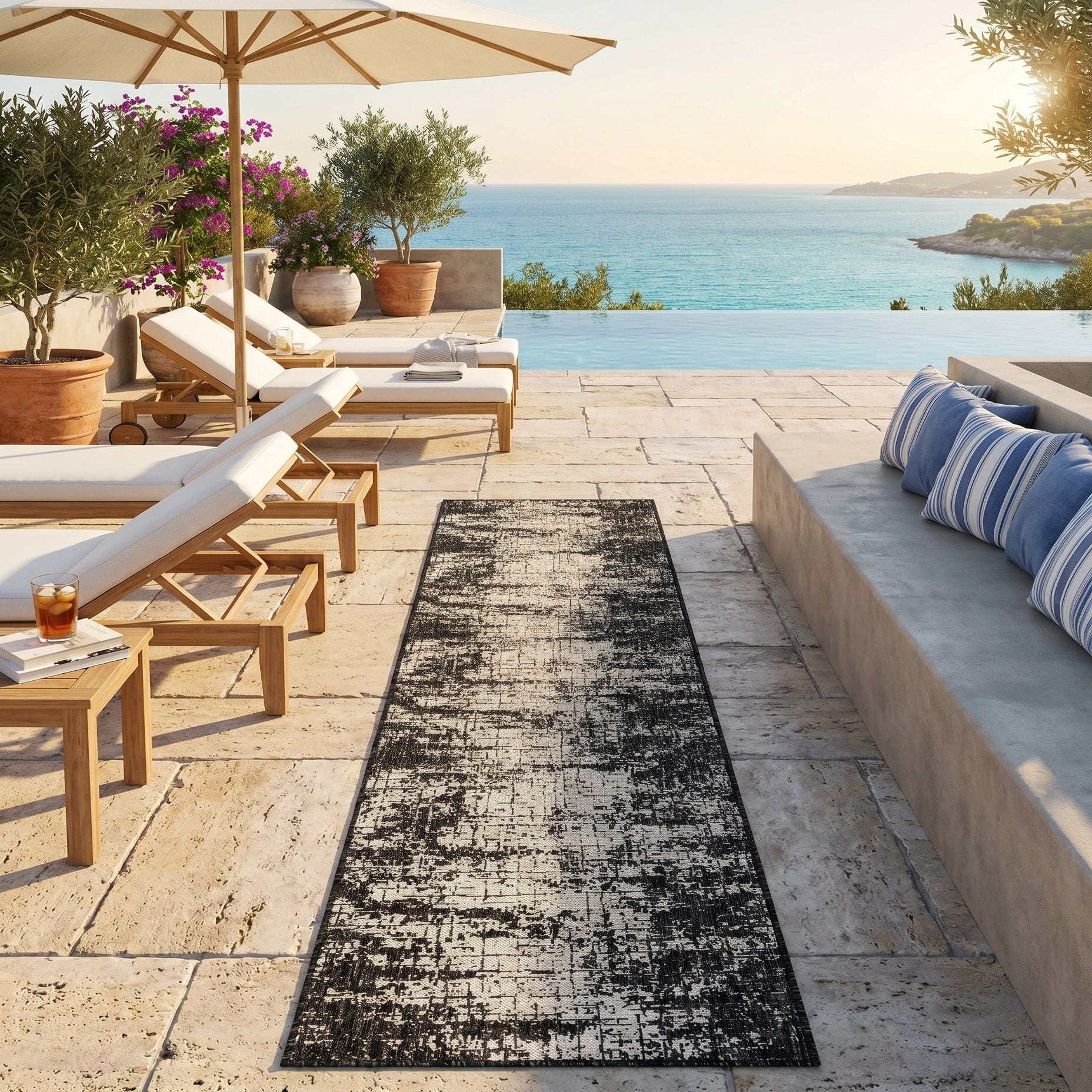 2' 7 x 12' Easy-Clean Modern Indoor / Outdoor Runner Rug