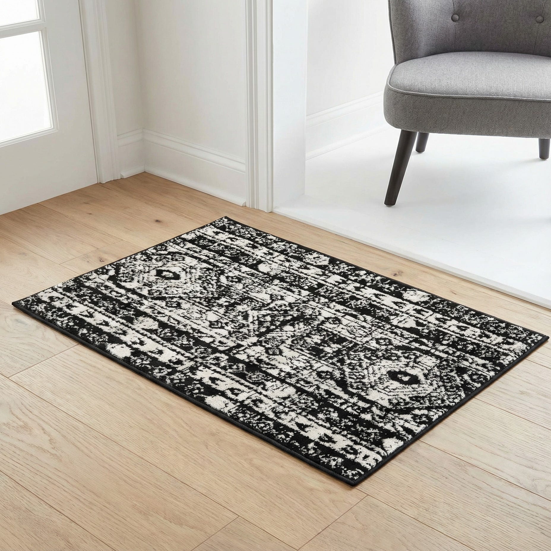 Primary color is Black and White. Colors in this rug include: Black and White, Black.