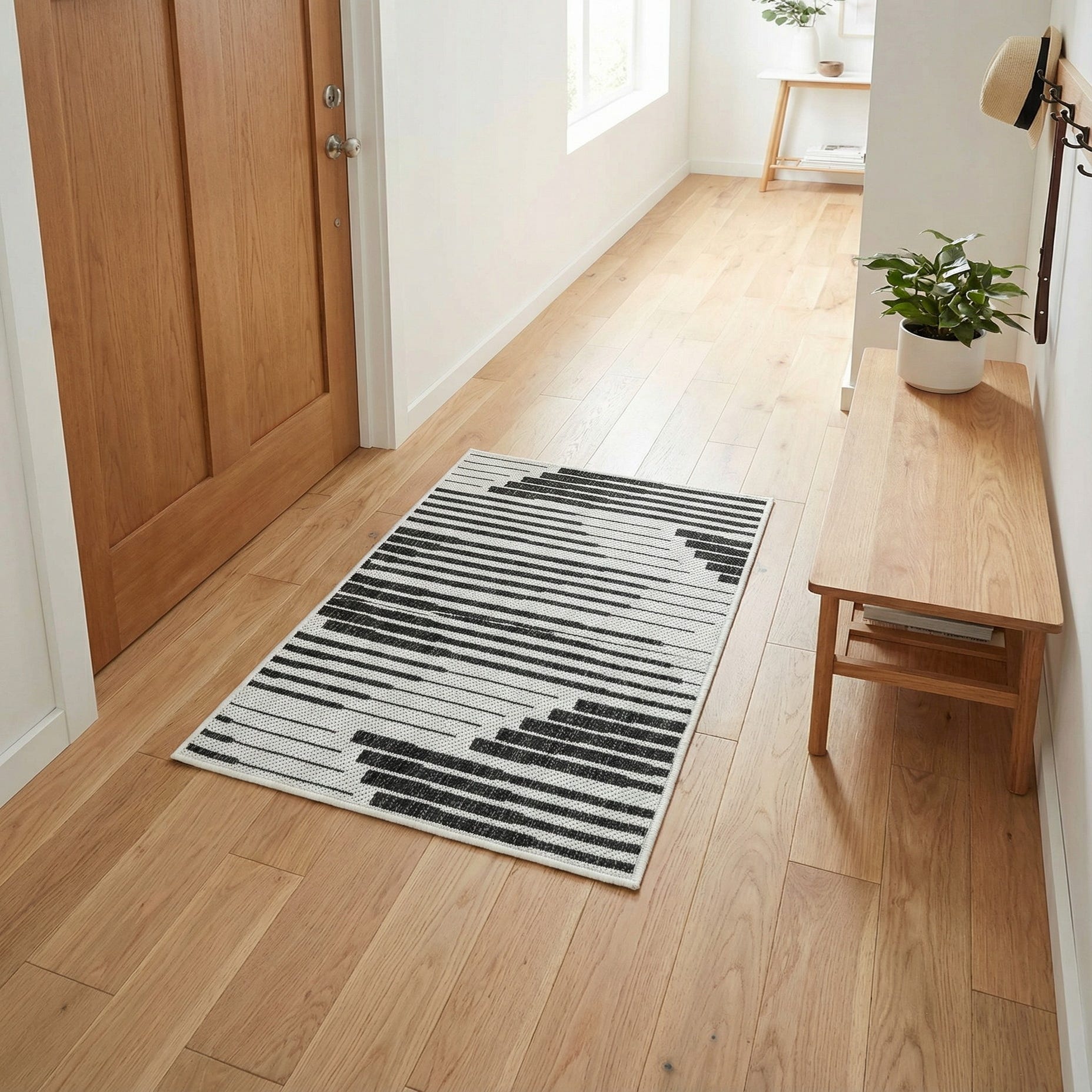 Its crisp black and white color scheme allows for versatility in styling, making it an ideal candidate for modern, minimalist, and even Scandinavian-inspired outdoor settings. As a transitional piece, it can effortlessly bridge the gap between indoor and outdoor decor, serving as a statement entryway rug or a chic accent in sunrooms and covered patios. With its shed-free quality, this rug is suitable for spaces where durability and effortless style are paramount.
