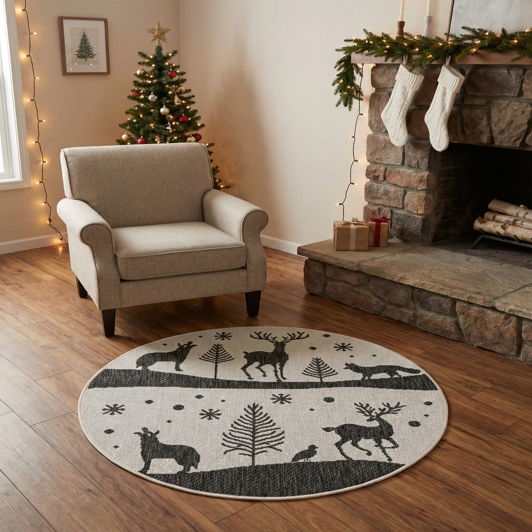 3' x 3' Washable Holiday Indoor / Outdoor Round Rug