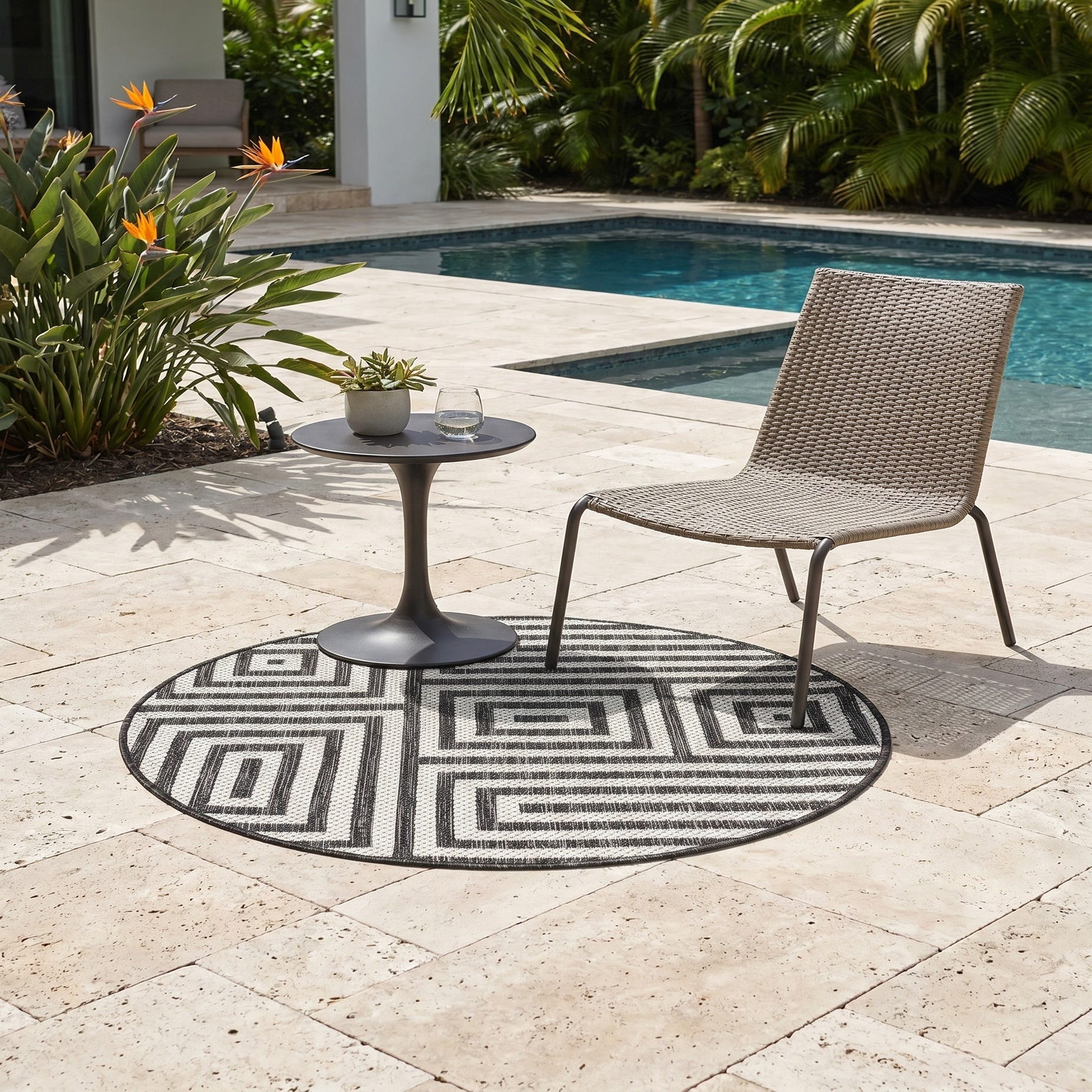 3' x 3' Easy-Clean Modern Indoor / Outdoor Round Rug