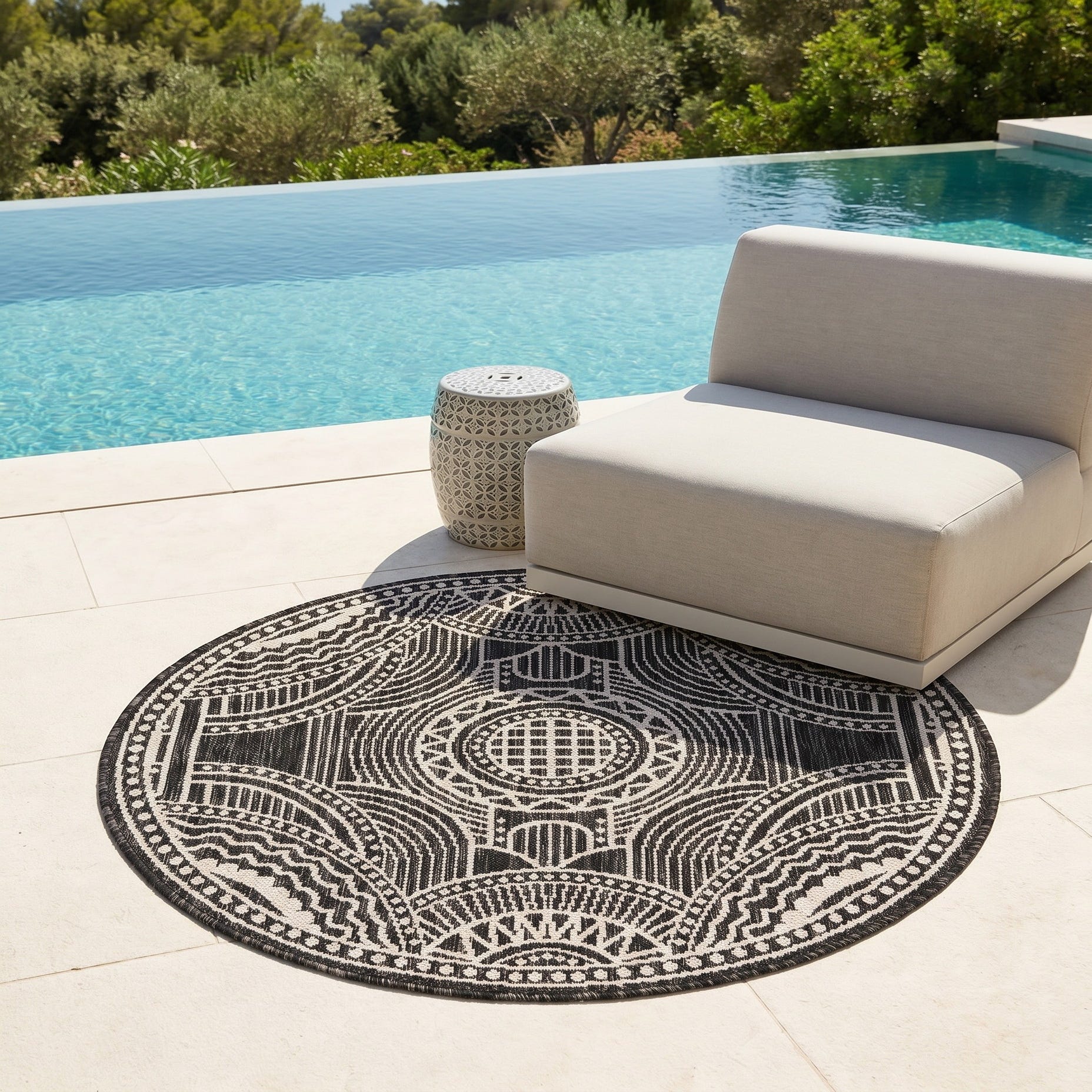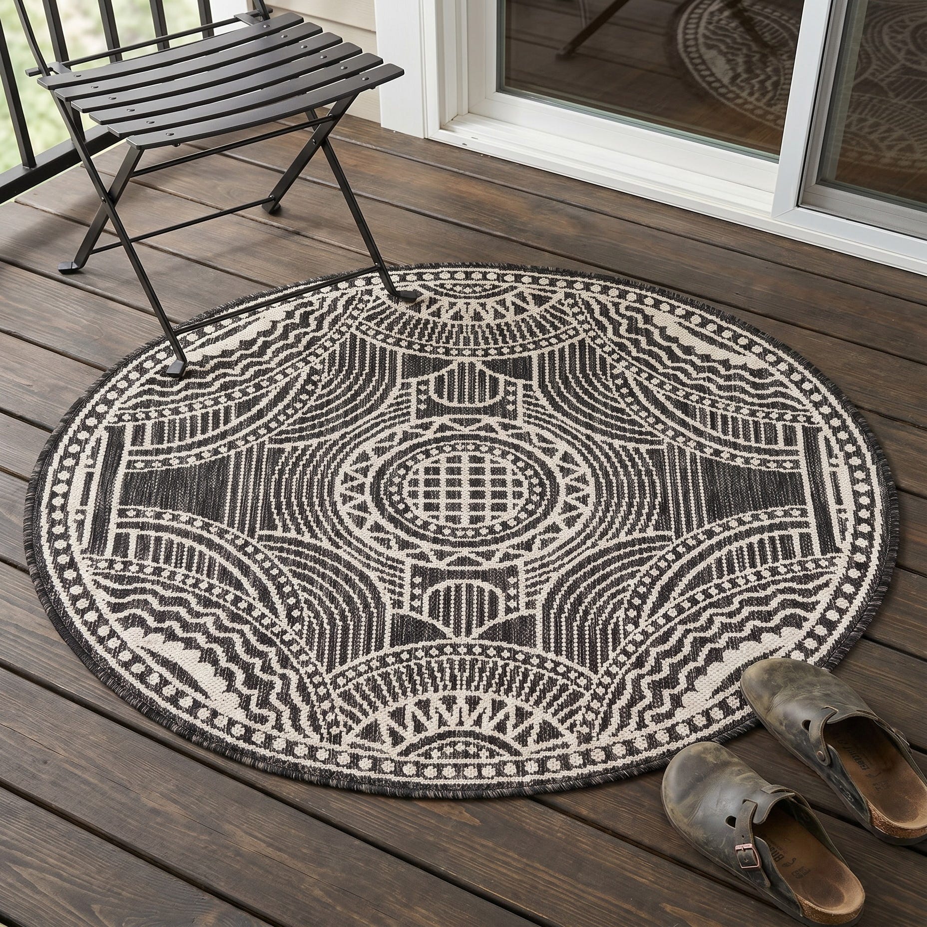 3' 1 x 3' 1 Easy-Clean Traditional Indoor / Outdoor Round Rug