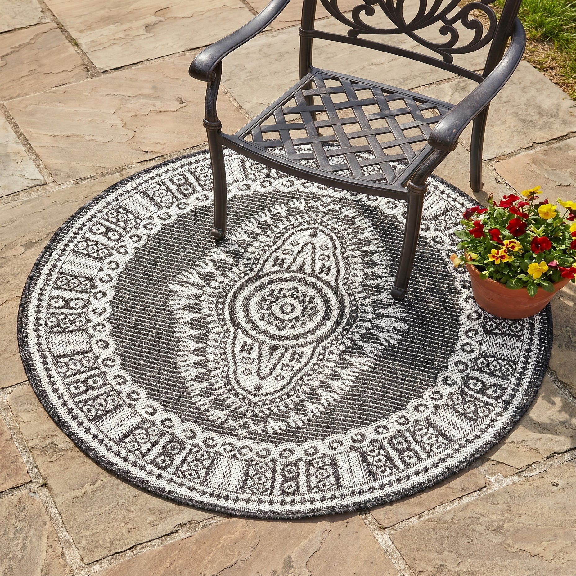 3' x 3' Easy-Clean Traditional Indoor / Outdoor Round Rug