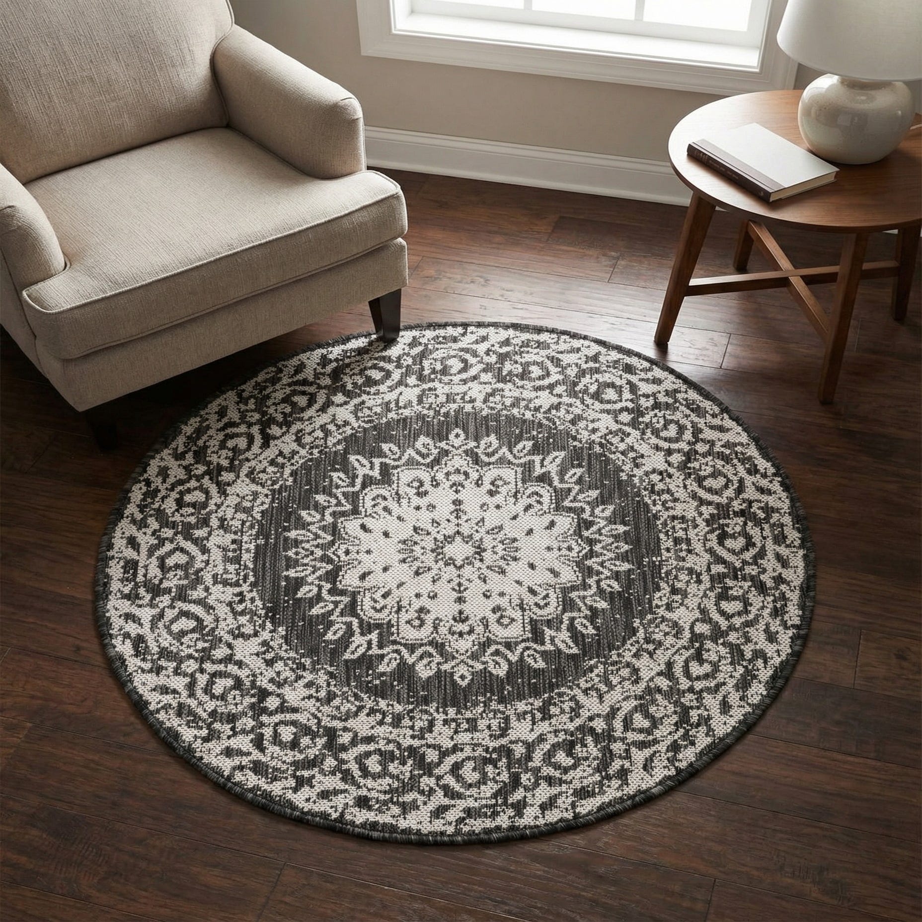 3' x 3' Washable Traditional Indoor / Outdoor Round Rug