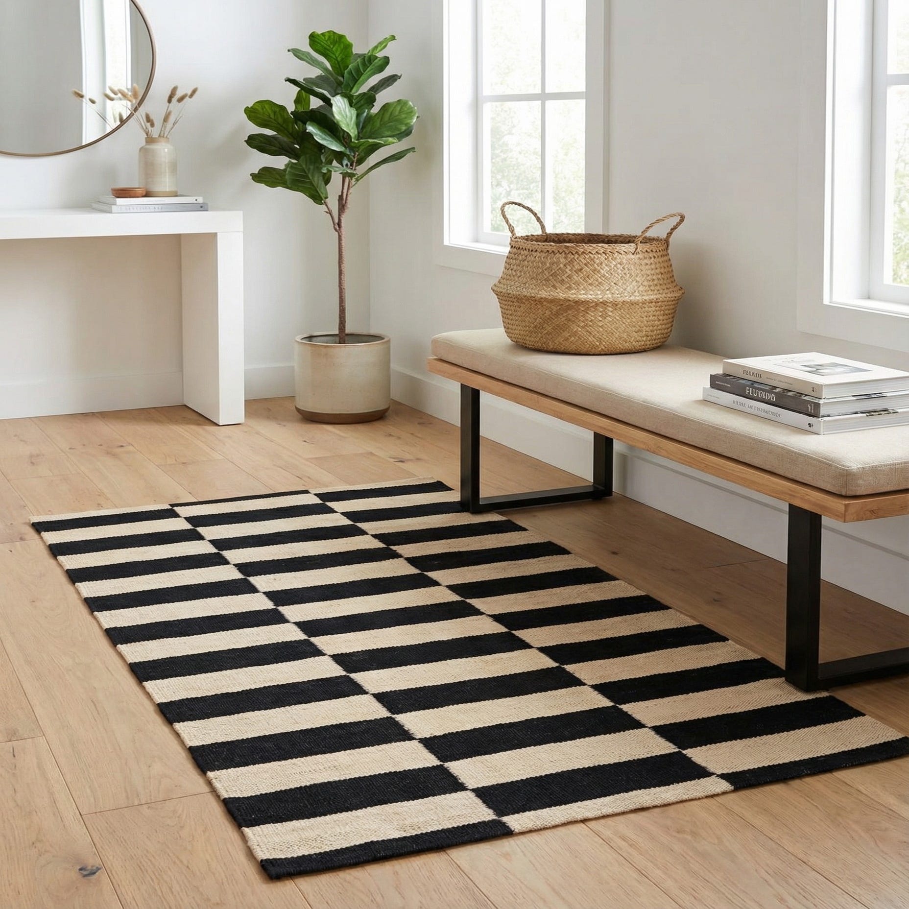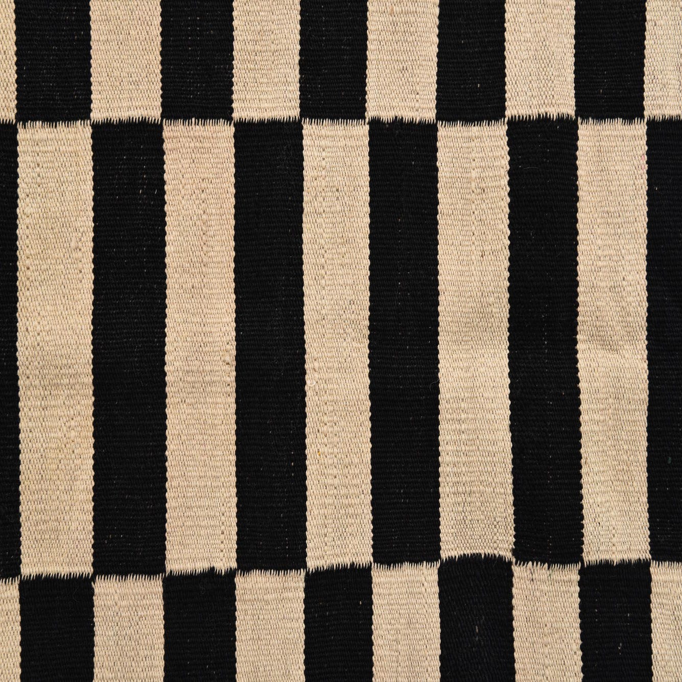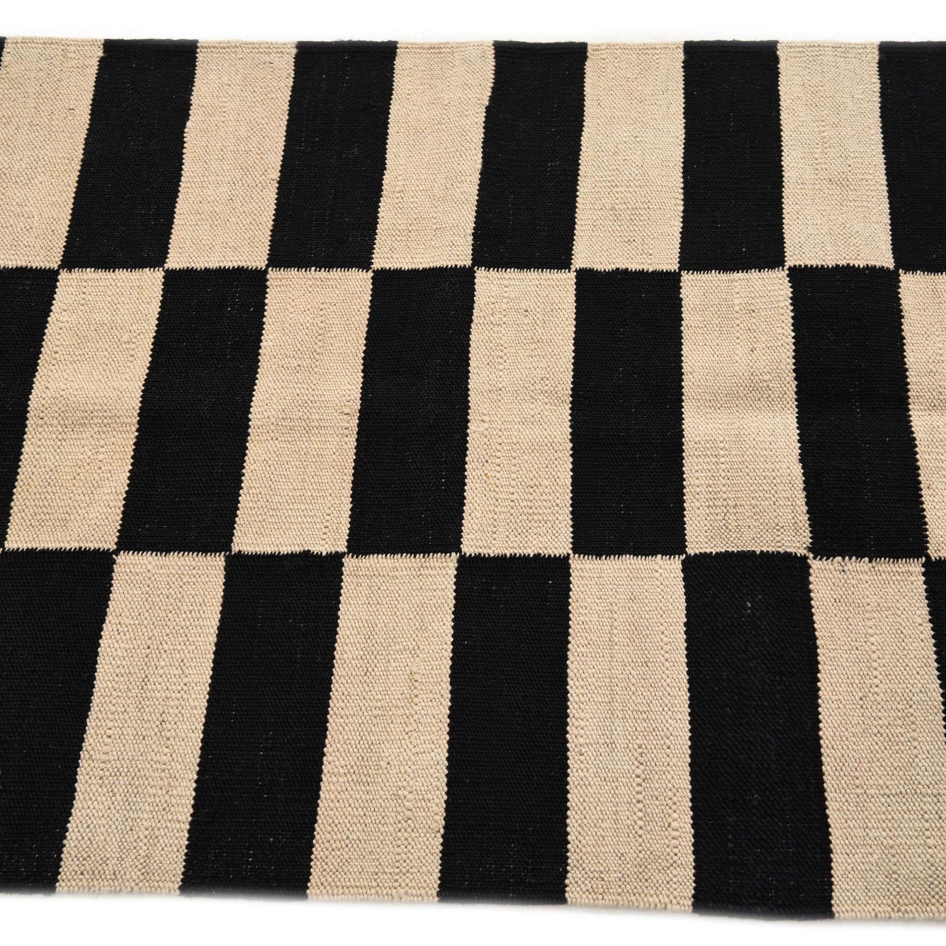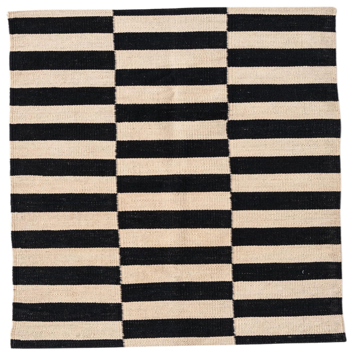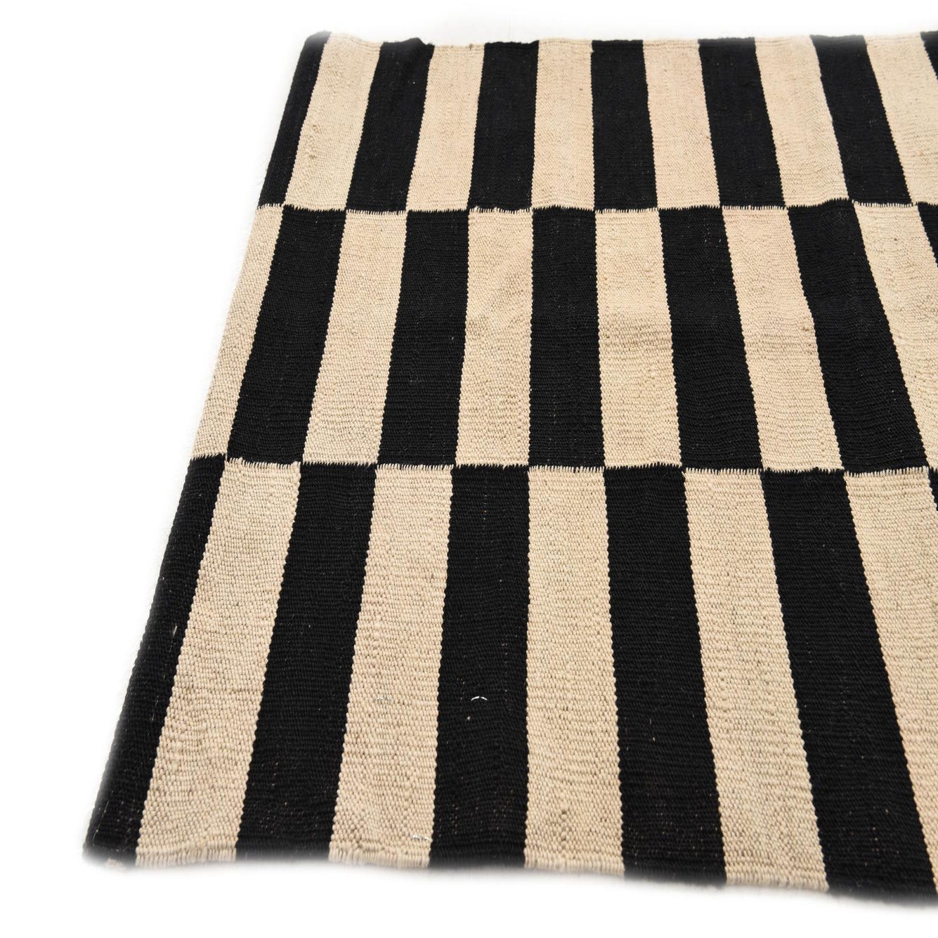 A 3x4 rectangular Kilim Modern rug with a bold black and ivory striped pattern, perfect for an indoor space.
