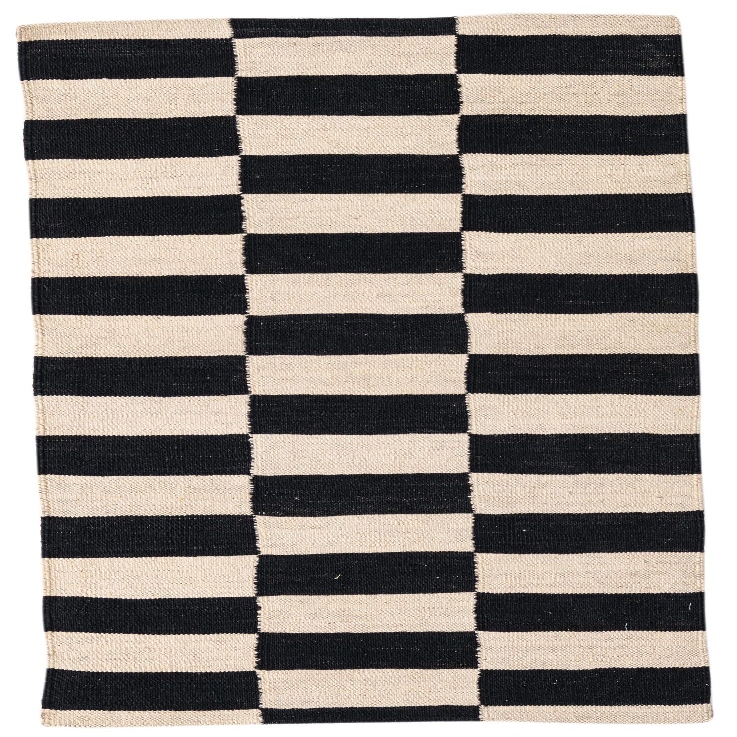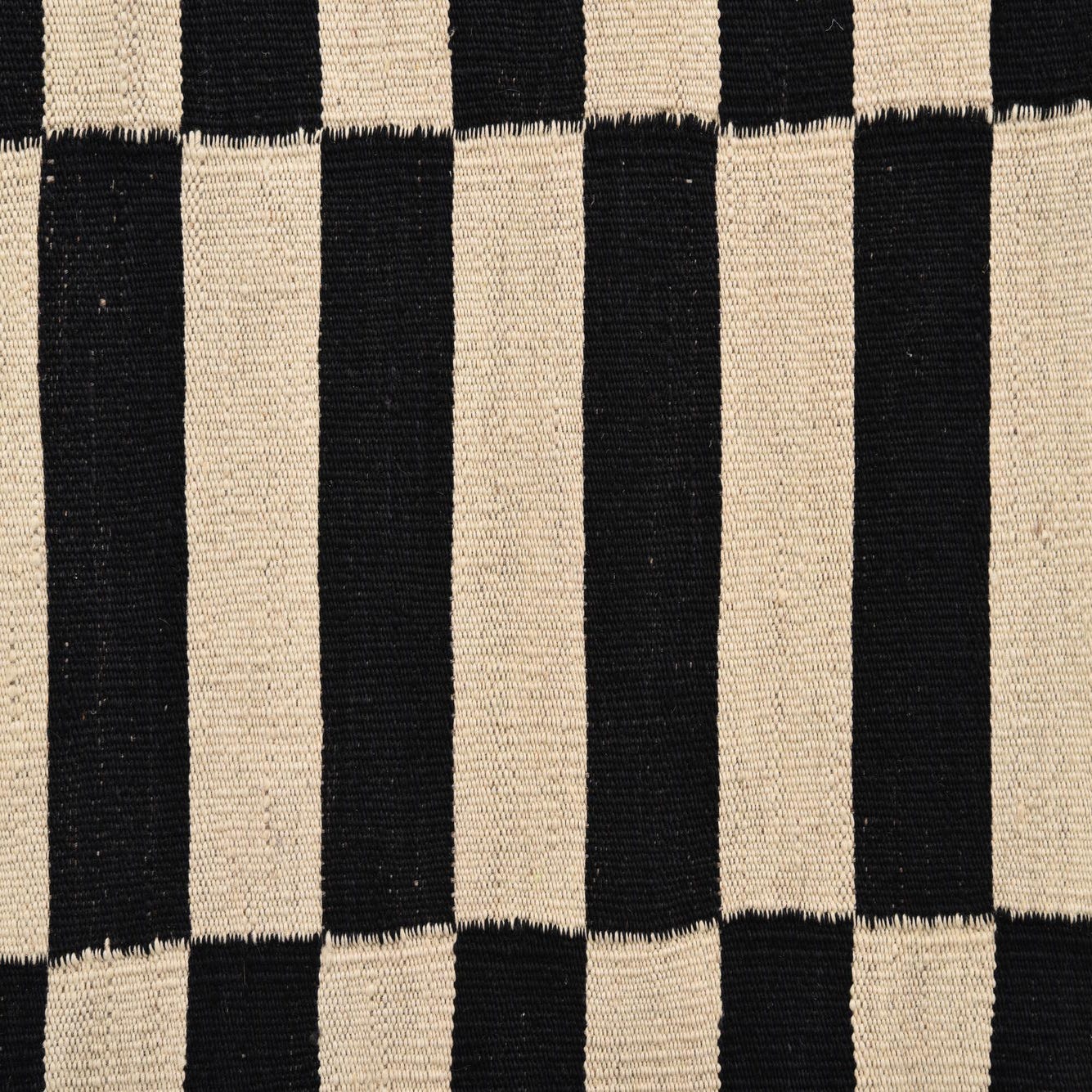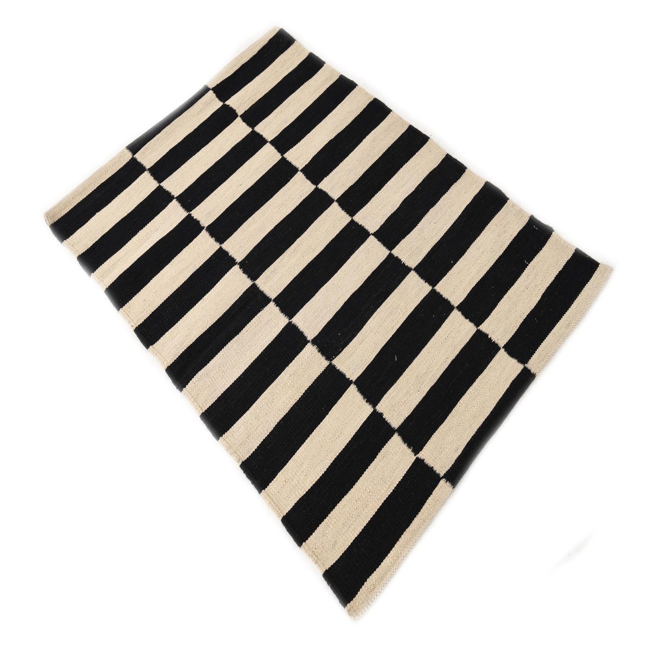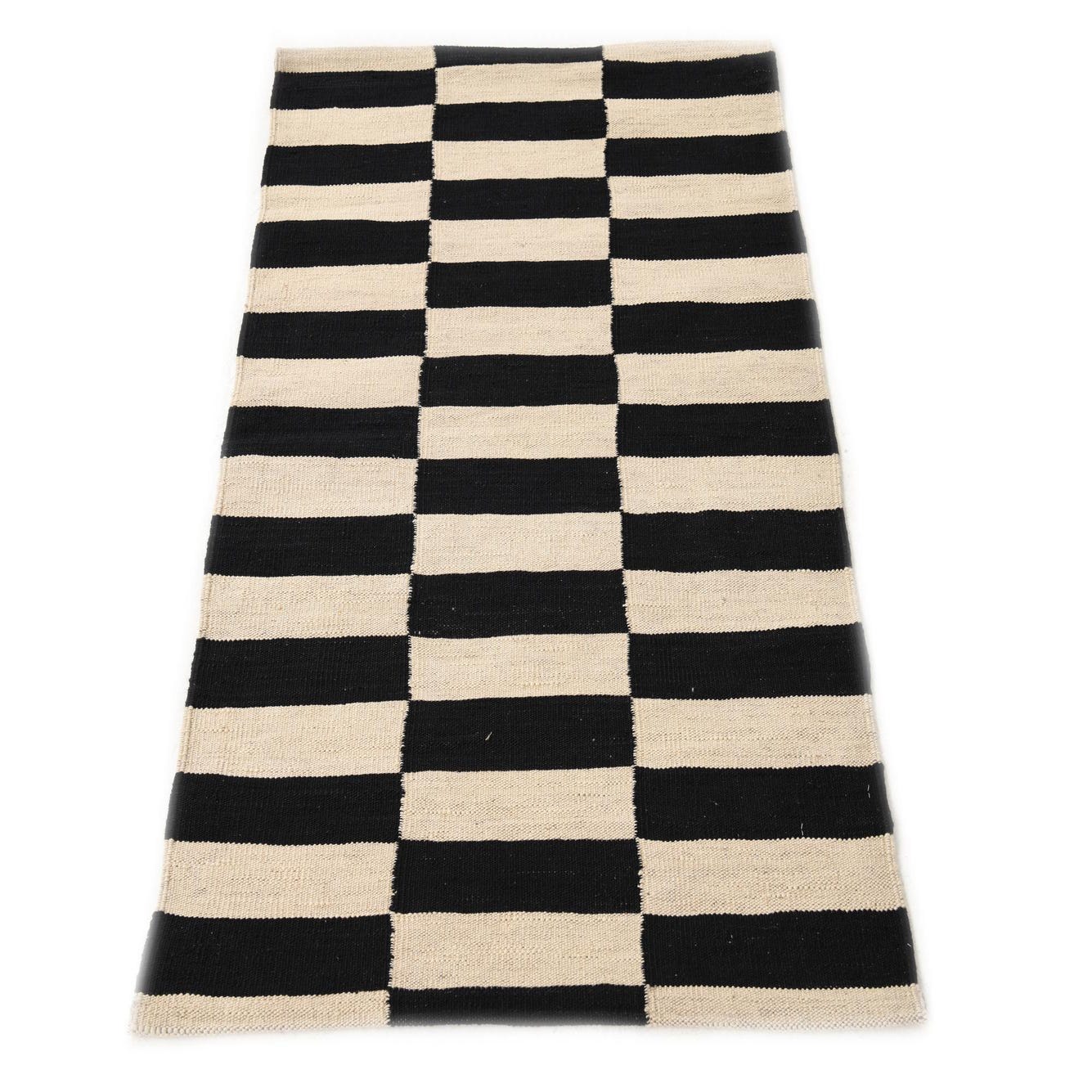 A 3x4 rectangular flatweave rug with a bold black and cream checkerboard pattern, perfect for a modern or tribal indoor space.