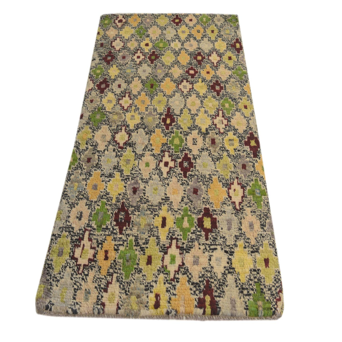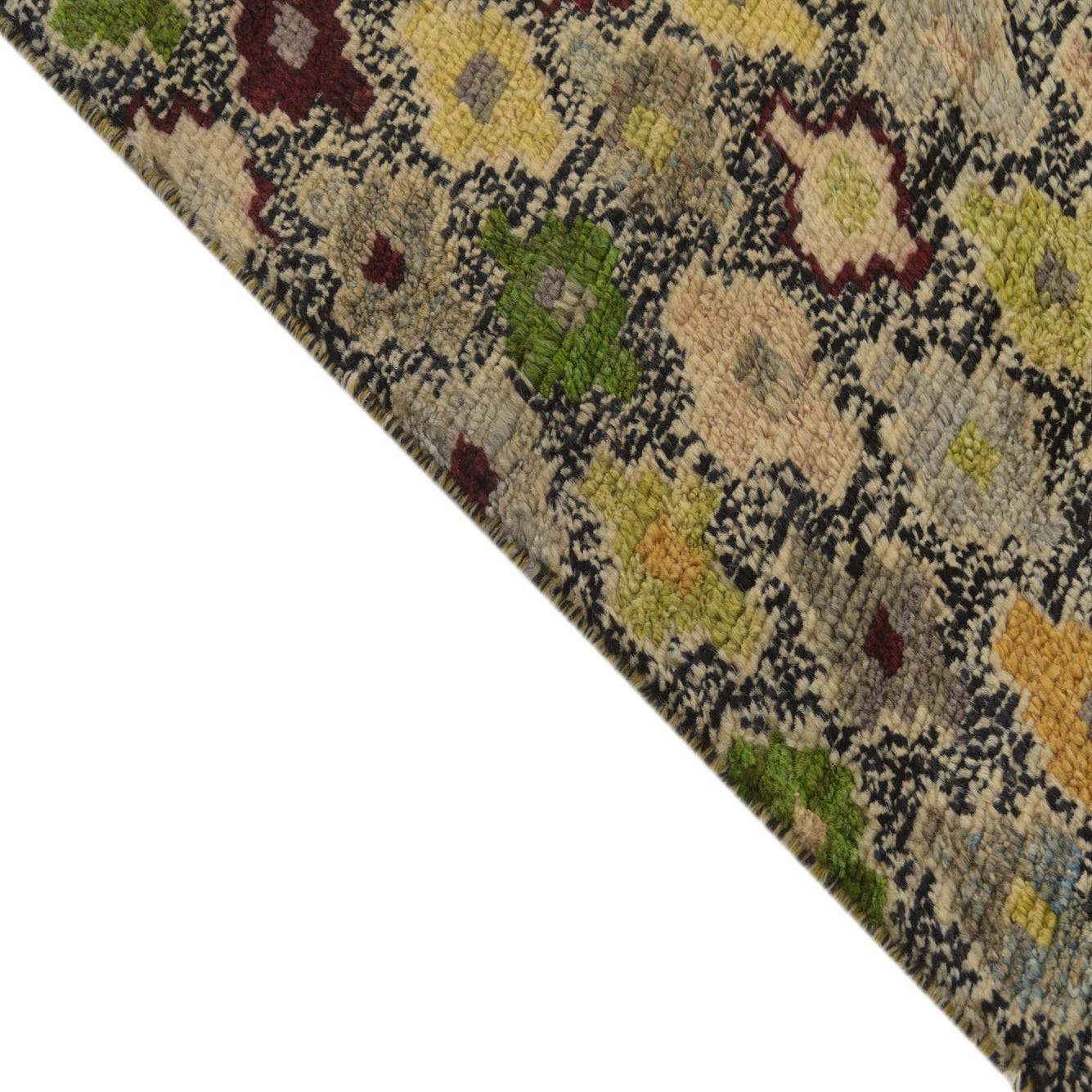 Primary color is Black and White. Colors in this rug include: Black and White, Beige, Green, Olive, Orange, Yellow.