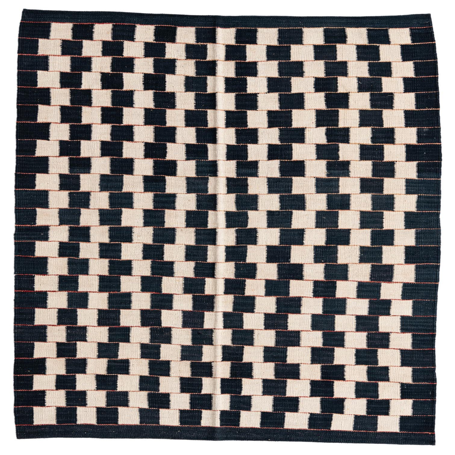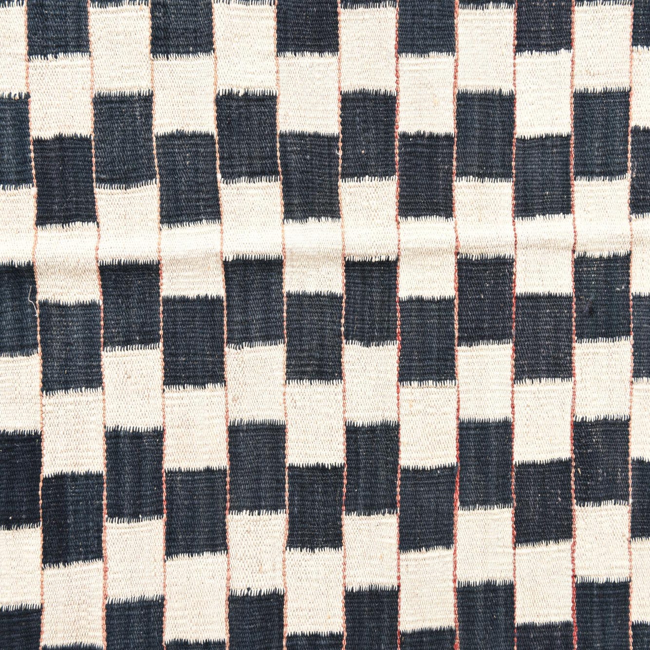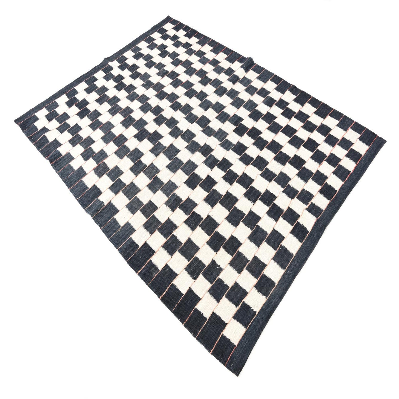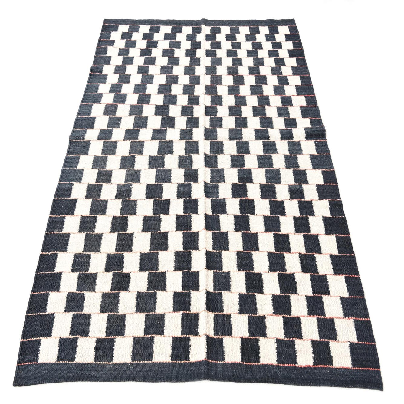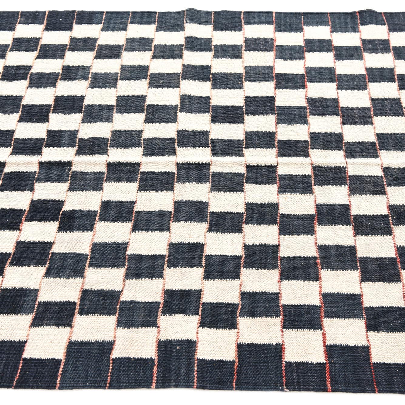 A 4x6 rectangular Kilim Modern rug featuring a bold black and ivory checkerboard pattern with subtle red accents.