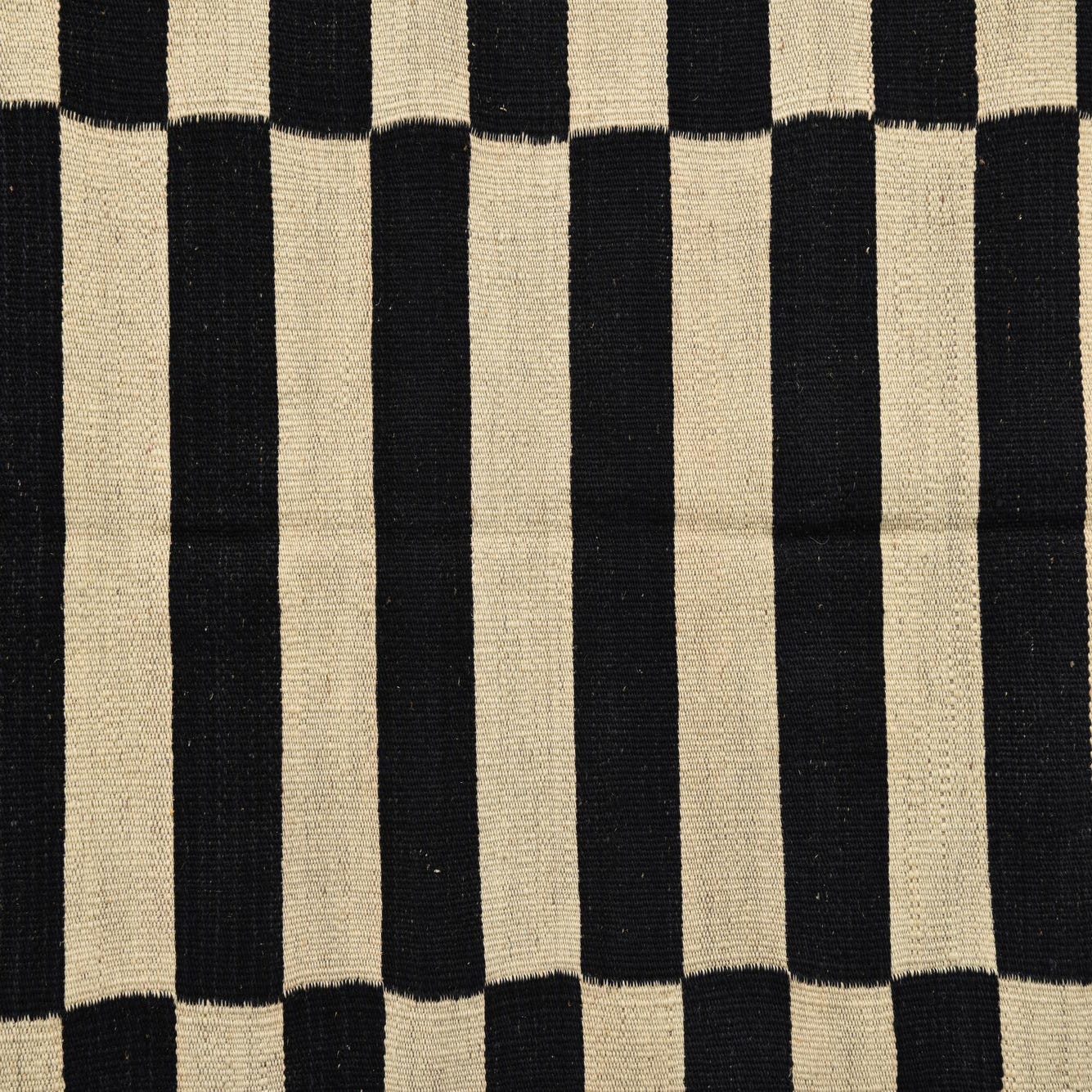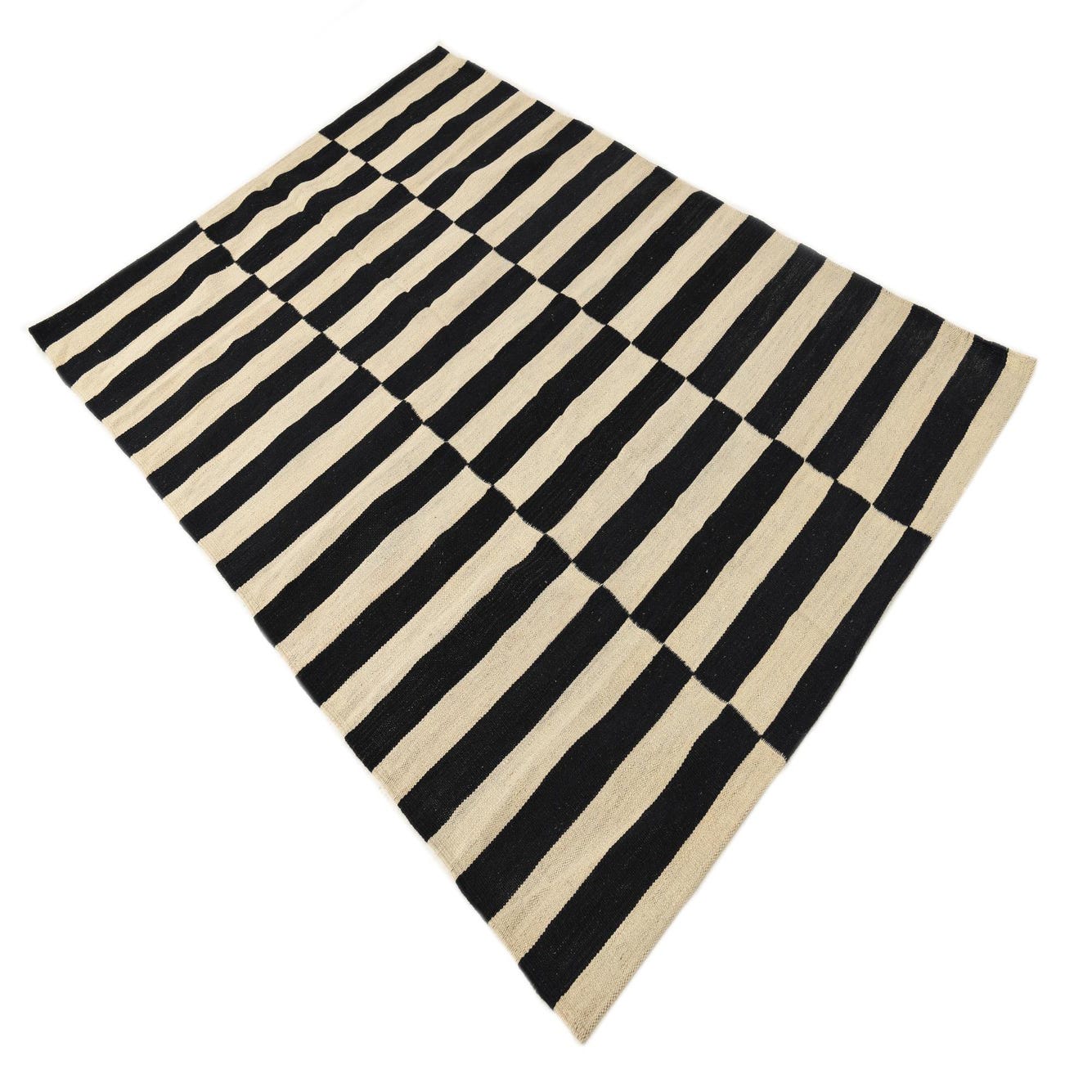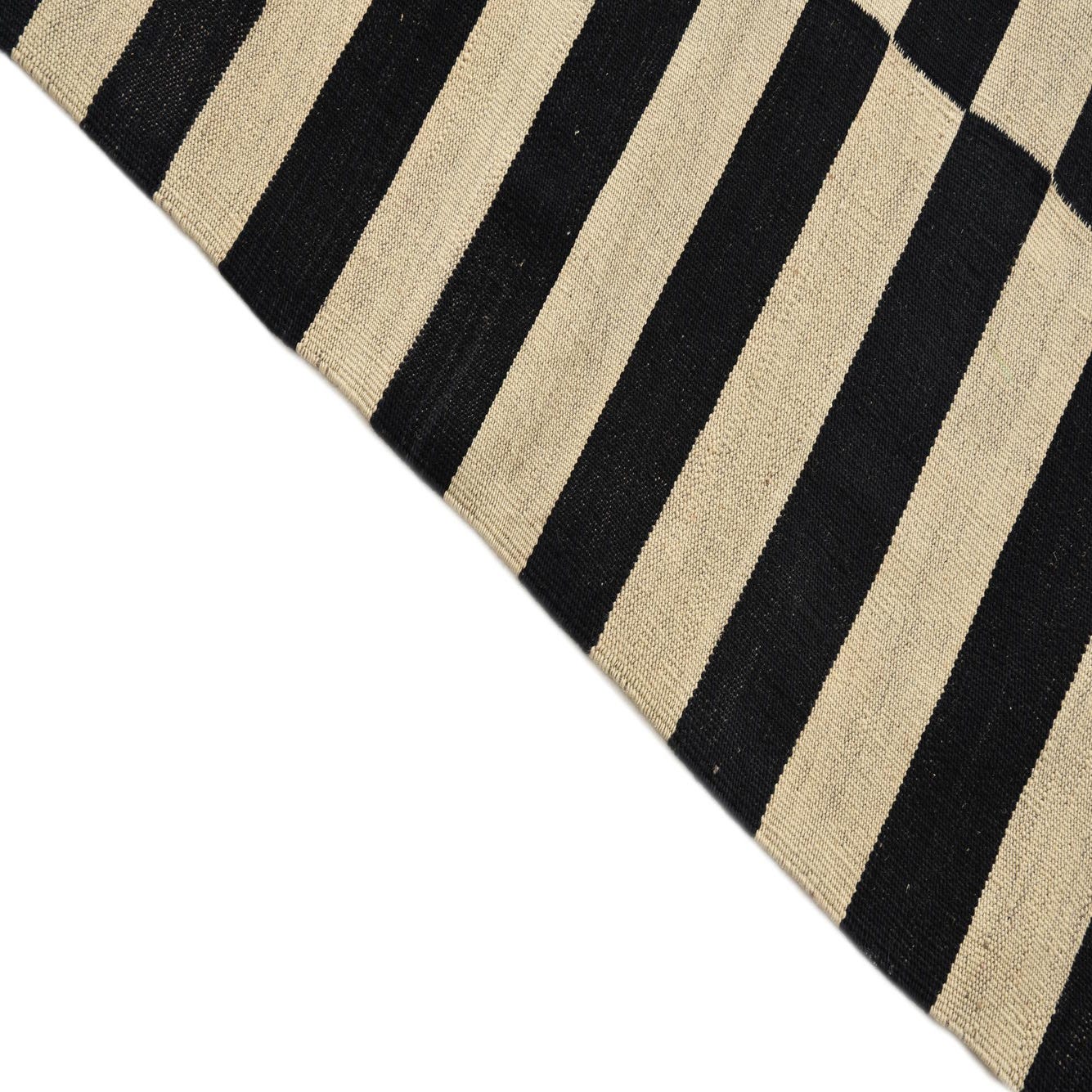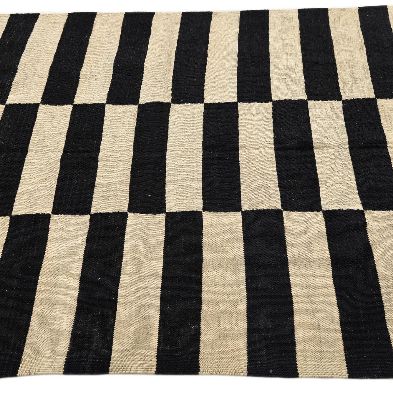 Part of the Kilim Modern collection, this hand-woven 4x6 area rug presents a striking black and white striped pattern that makes a bold statement in any room. The linear design creates a dynamic visual contrast that is both timeless and contemporary. Hand-woven from 100% wool, this rug boasts a flatweave construction that offers a tactile quality and durability.