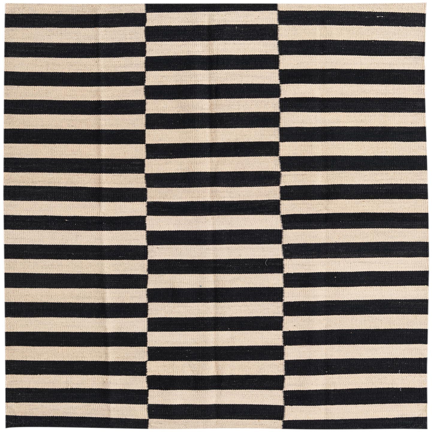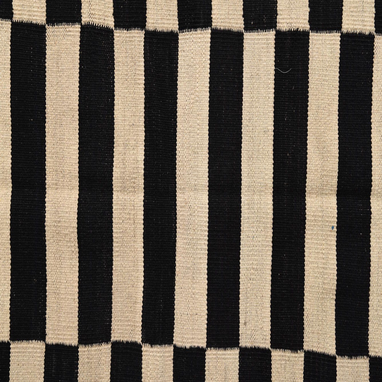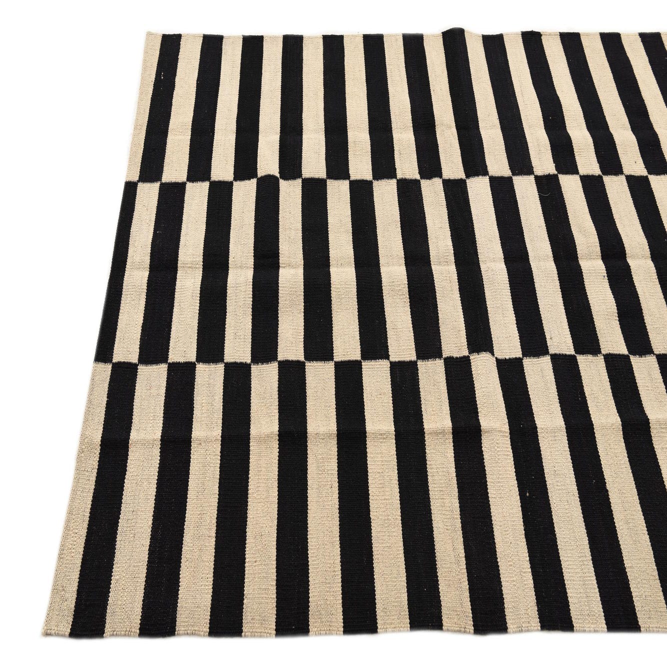 The Kilim Modern collection presents a striking 4x6 rug handwoven from 100% wool, showcasing a timeless striped pattern. The design features bold black and crisp white stripes, creating a clean and contemporary look that anchors any room with simplicity and sophistication.