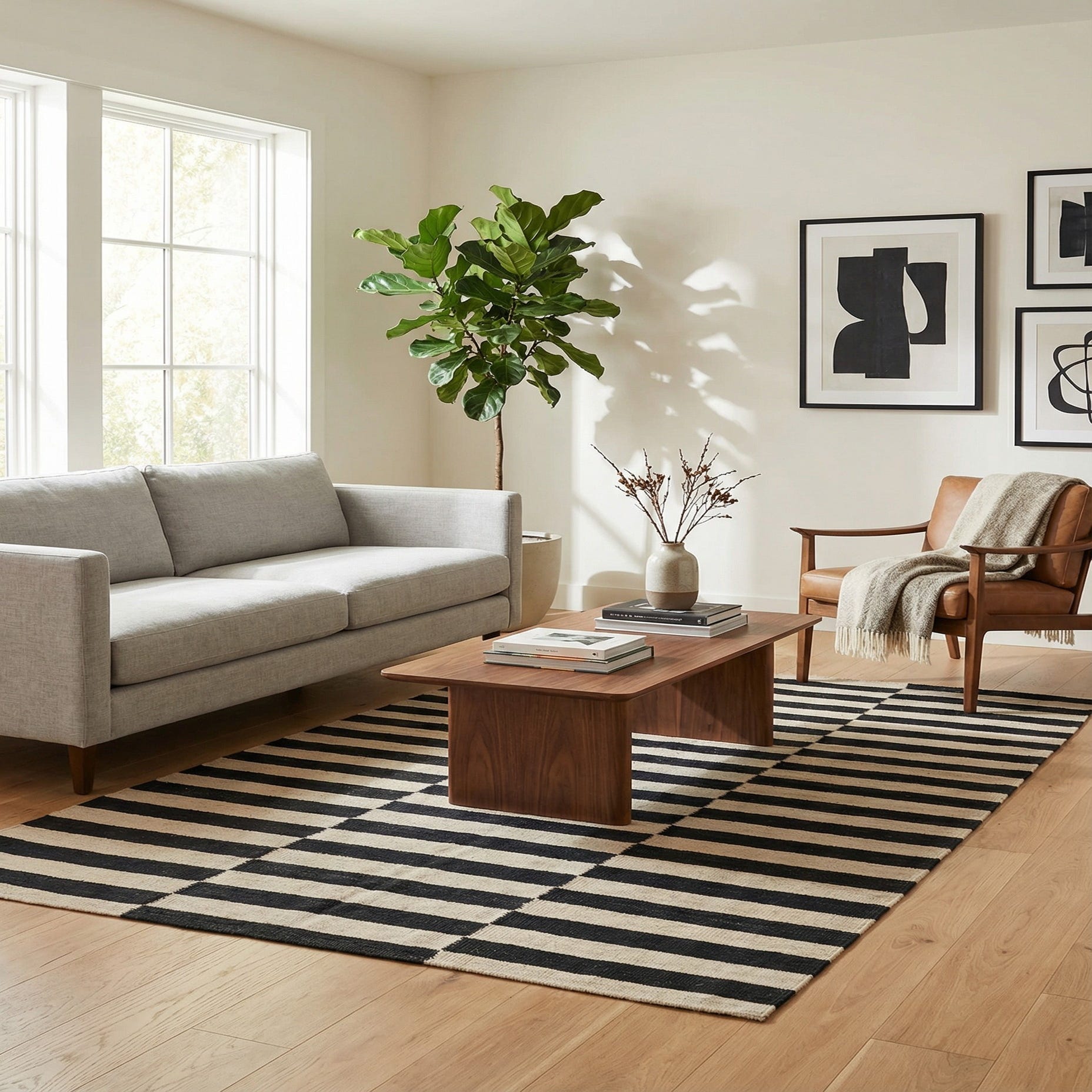 The timeless stripe motif lends itself to a versatile array of interior styles, seamlessly integrating with minimalist, Scandinavian, and contemporary decor. The striking contrast of black and white can serve as a focal point in a neutrally toned room or complement a space with monochromatic accents.