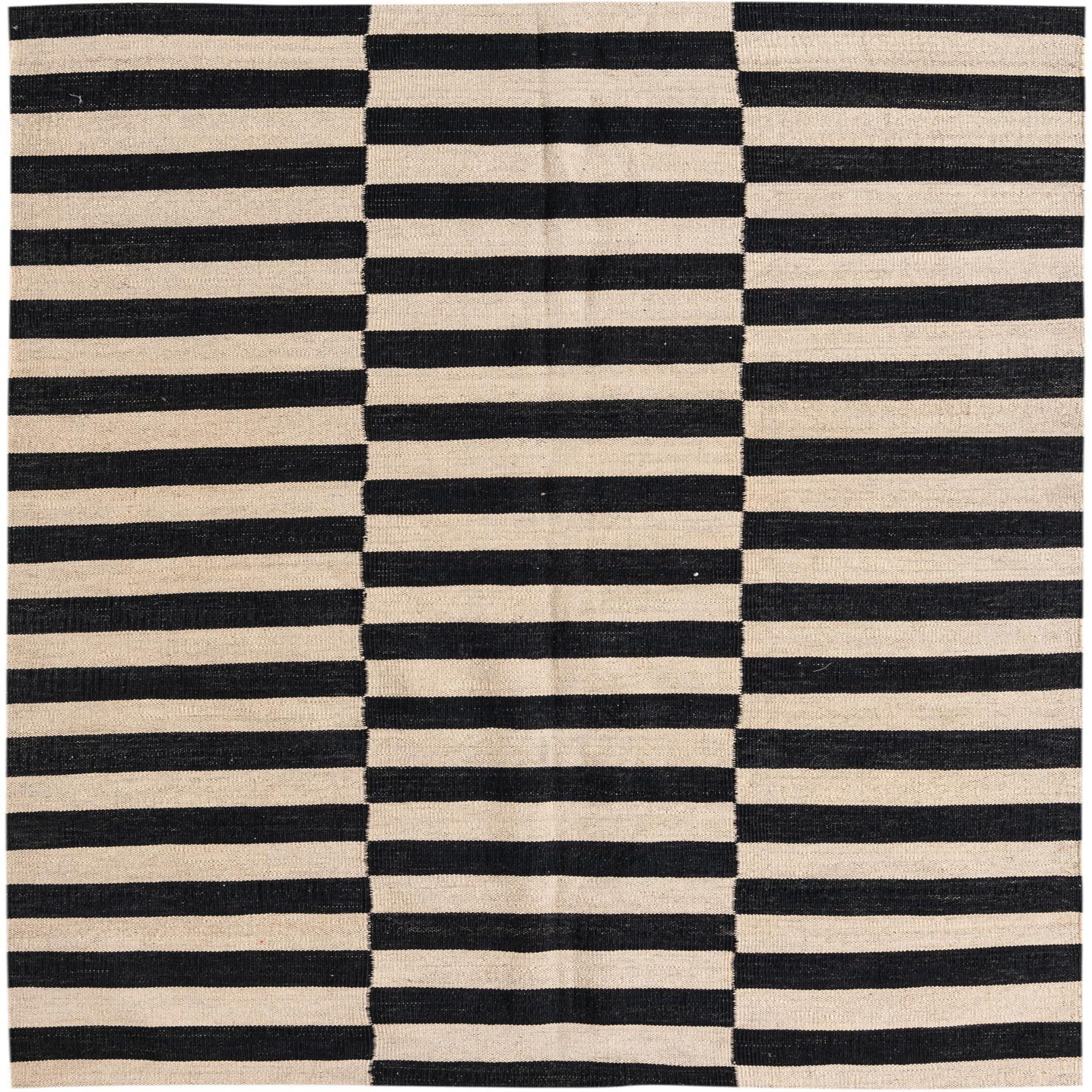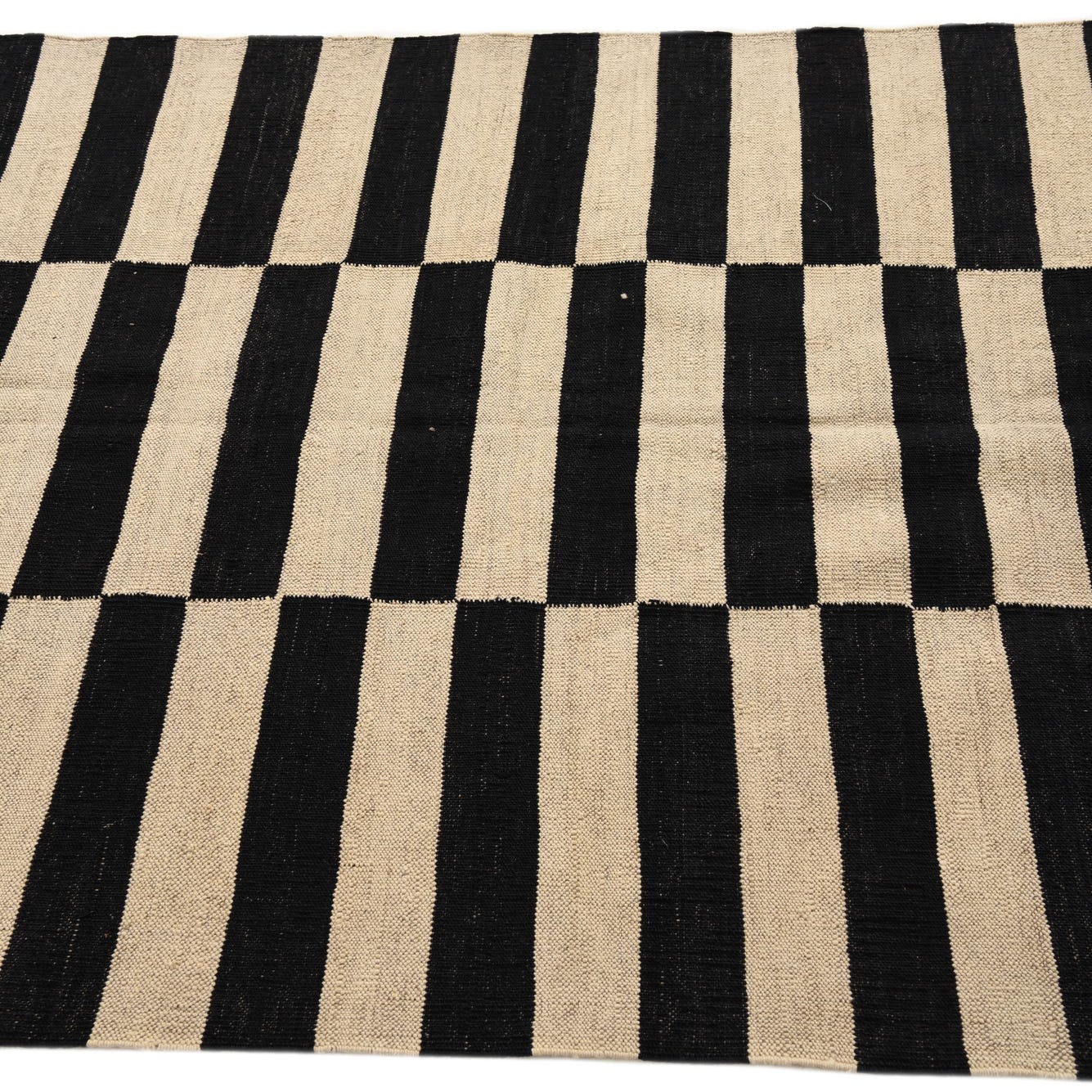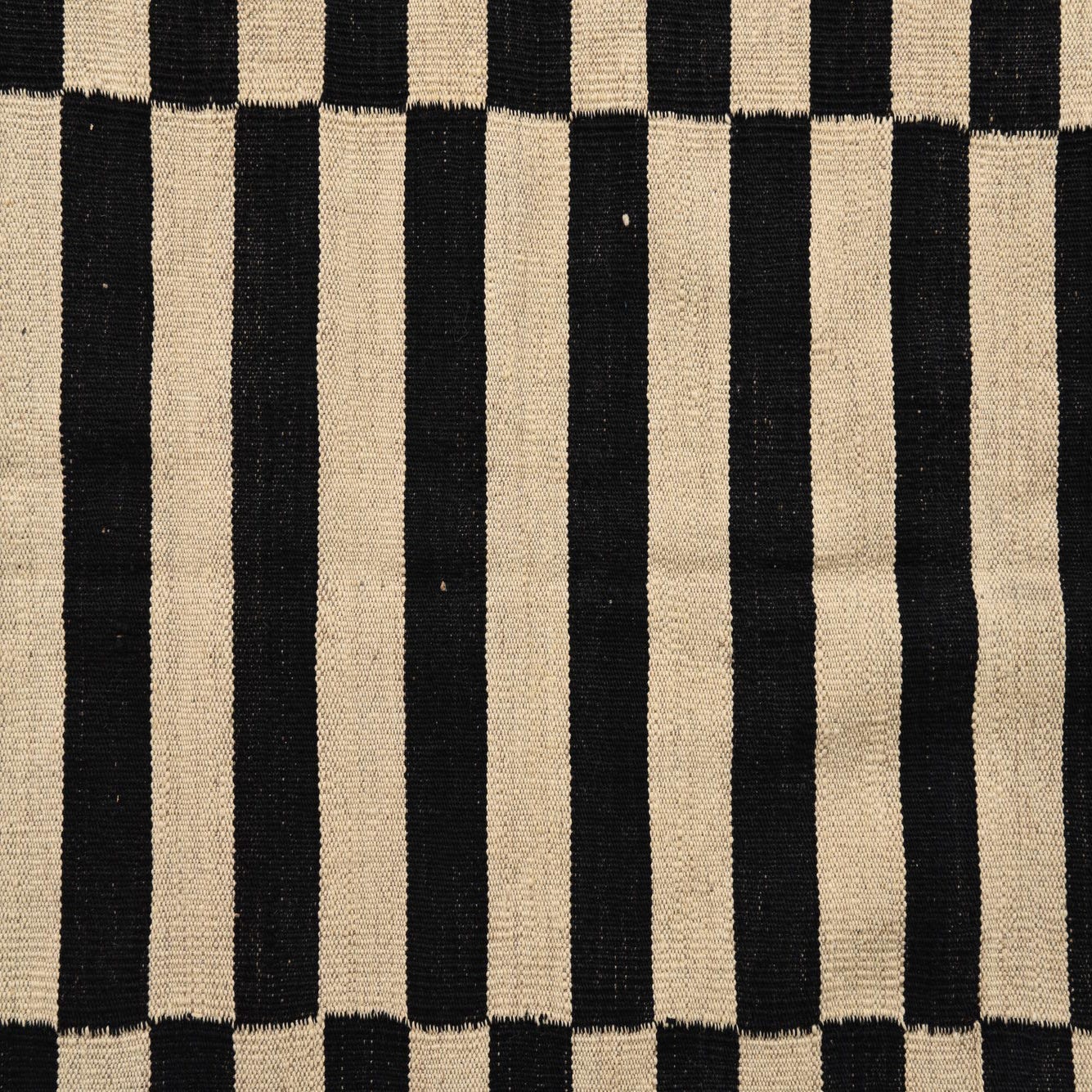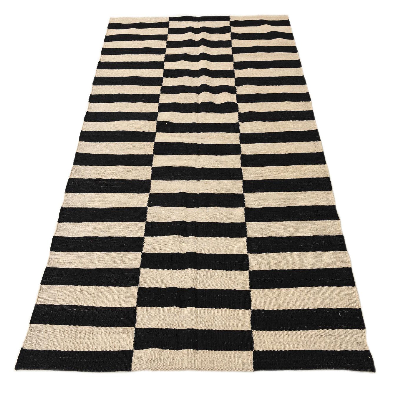A 4x6 rectangular Kilim Modern wool rug featuring bold black and cream horizontal stripes, perfect for a living room.