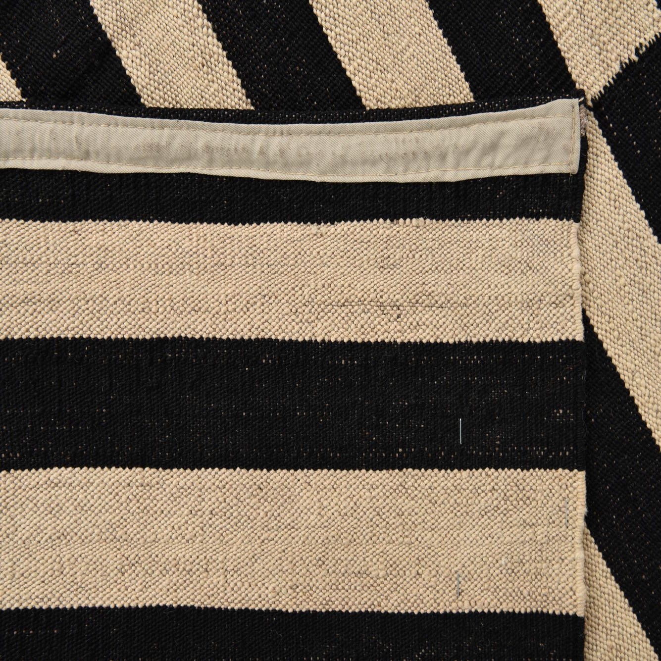 Bold, graphic horizontal bands in black and natural white form a three-column layout that brings crisp, modern geometry to the floor. The alternating stripes create a steady visual rhythm that anchors a room without competing with other patterns, and the high-contrast palette makes a clear statement in contemporary or pared-back interiors.