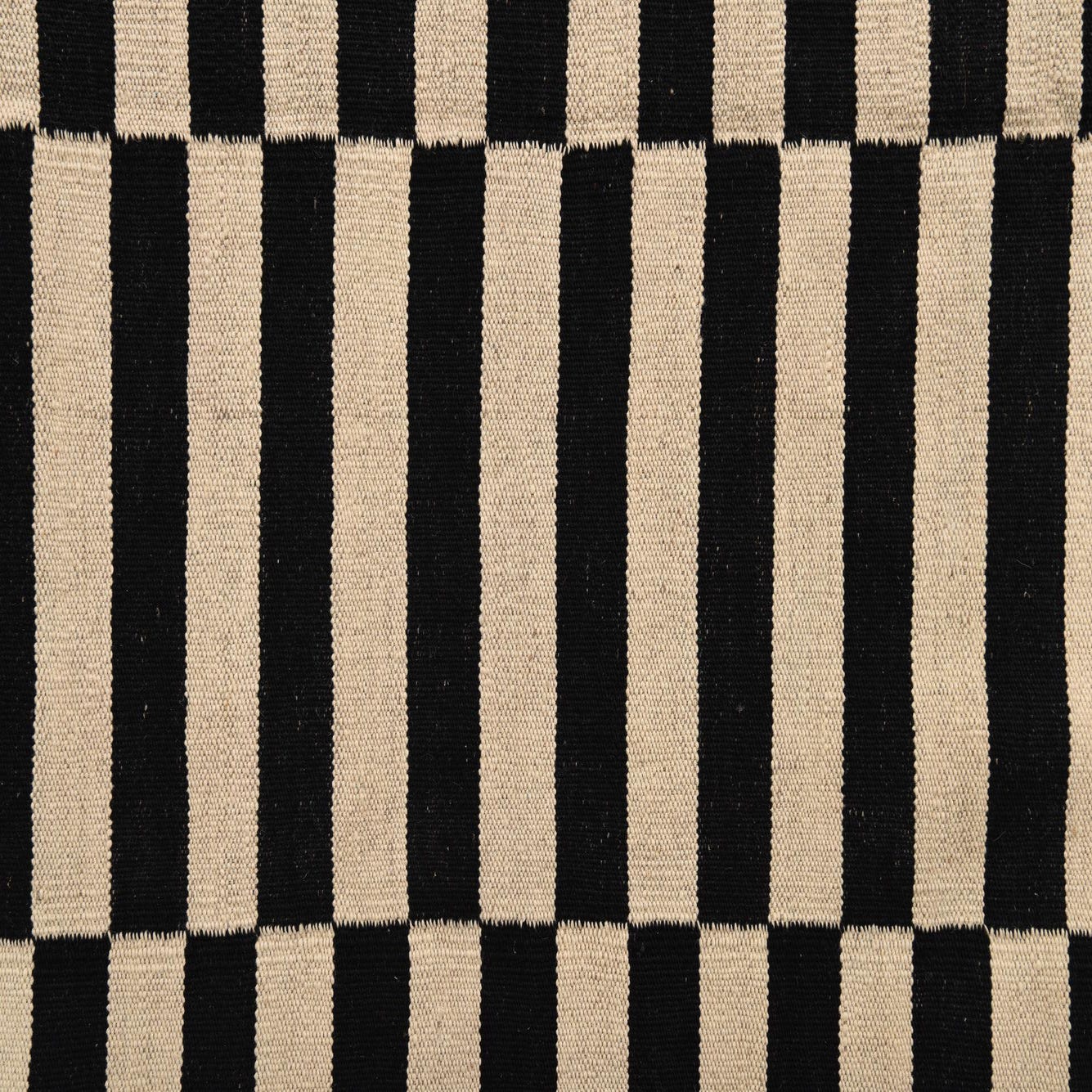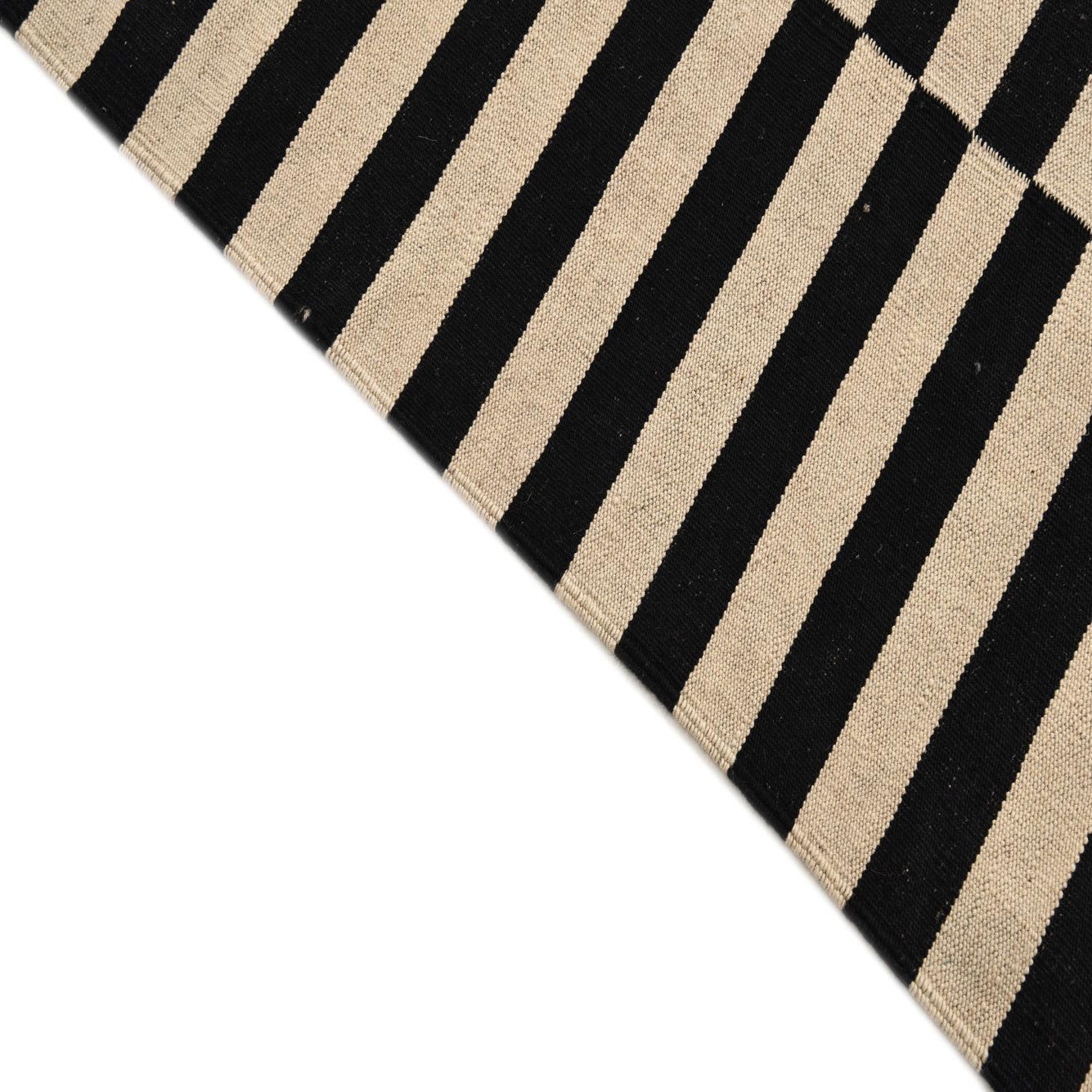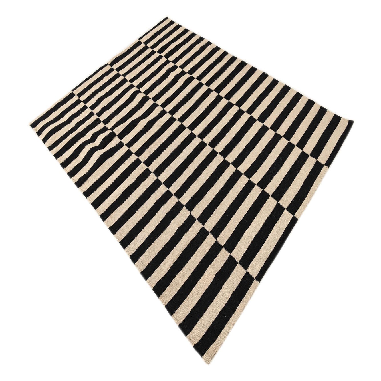 The Kilim Modern collection presents a hand-woven 4x6 rug crafted from 100% wool, demonstrating a balance of durability and comfort. The classic black and white color palette creates a striking contrast within its bold striped pattern, which is versatile enough to complement both contemporary and traditional interiors.