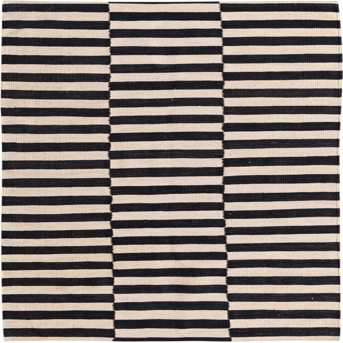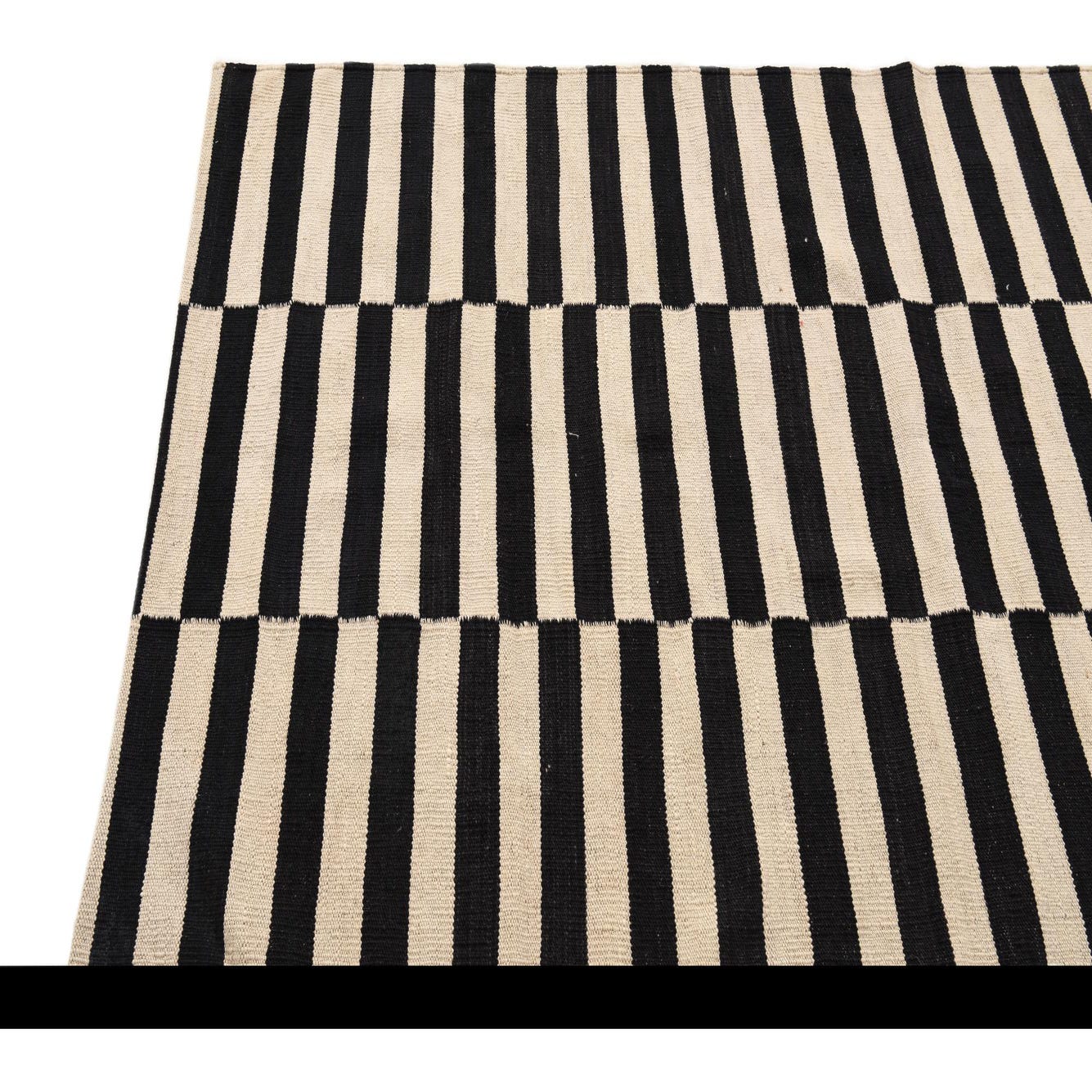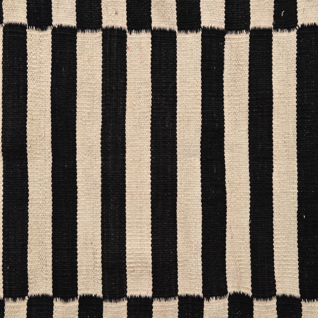 A 4x6 rectangular Kilim Modern rug with a bold black and ivory stripe pattern, featuring offset blocks.