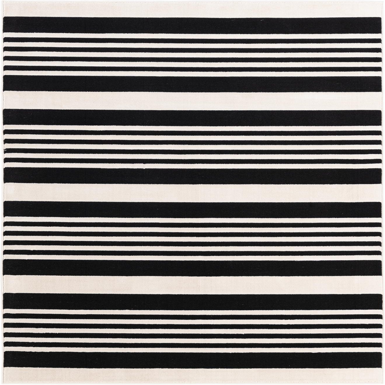 This design works well in minimalist and modern interiors where bold, simple geometry is desired. Place it to anchor a seating area, define an entryway, or add structure to a home office. It pairs naturally with light or dark woods, metal accents, and pops of color—try layered textiles and solid-colored furniture to let the striped pattern take center stage without overwhelming the room.