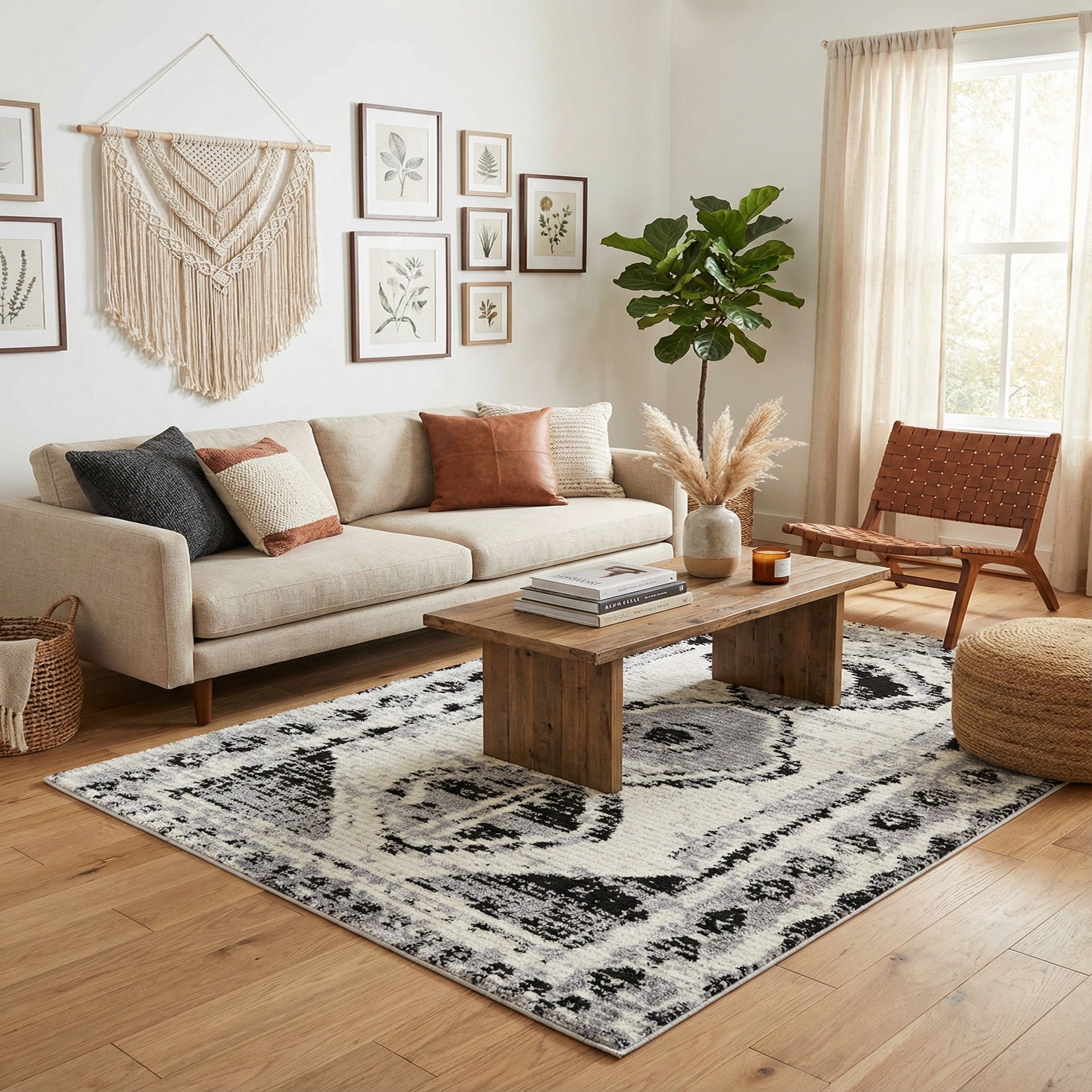 This piece works well to define a seating area beneath a coffee table, add contrast in an entryway, or bring layered texture to a bedroom. It pairs naturally with light-washed woods and warm leather, as well as monochrome or industrial interiors that favor black, white, and gray palettes. Use it to anchor clean-lined furniture, soften metal accents, or complement textured linens and throw pillows for a cohesive, modern look.