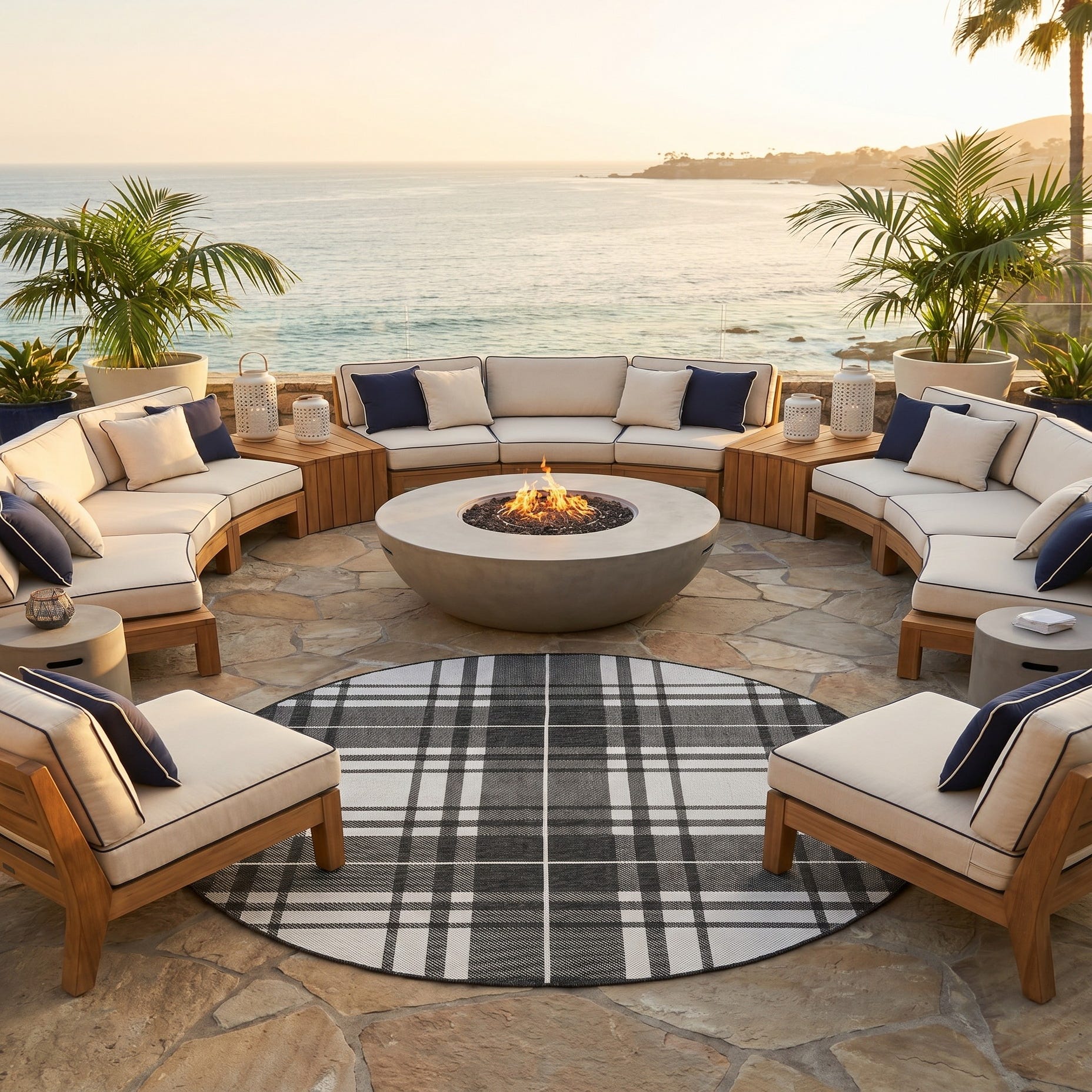 6' x 6' Easy-Clean Checkered Indoor / Outdoor Round Rug