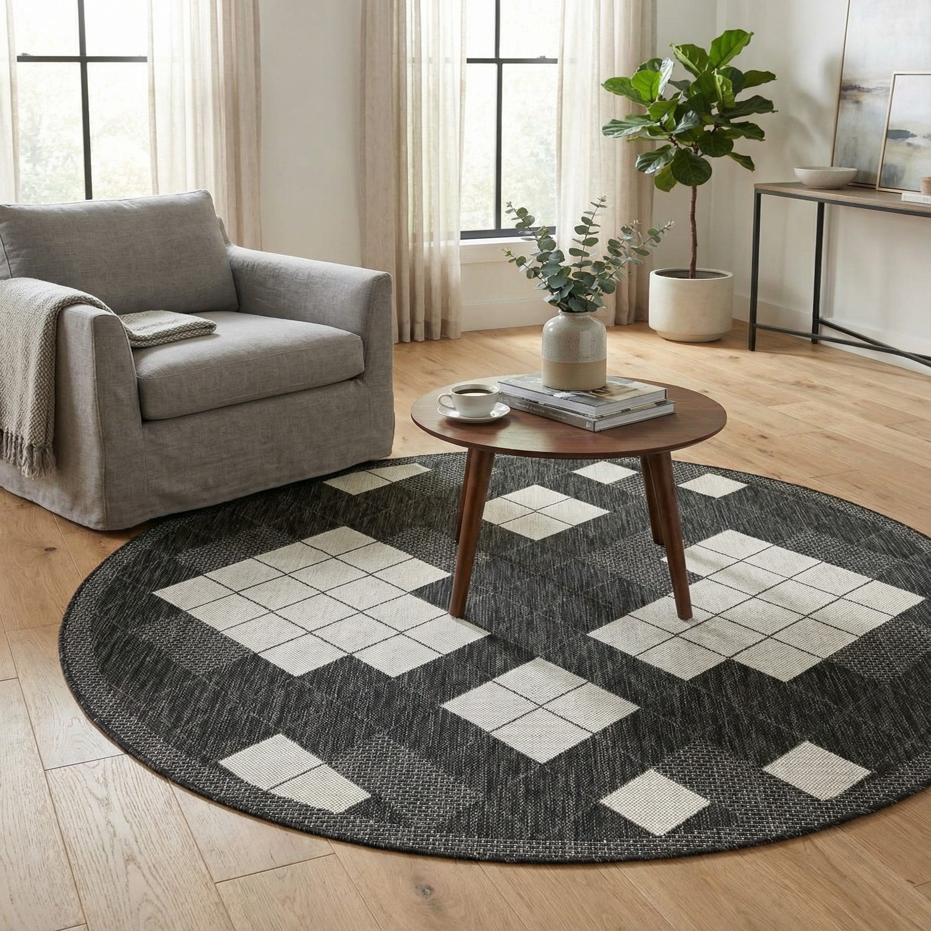 6' x 6' Washable Modern Indoor / Outdoor Round Rug