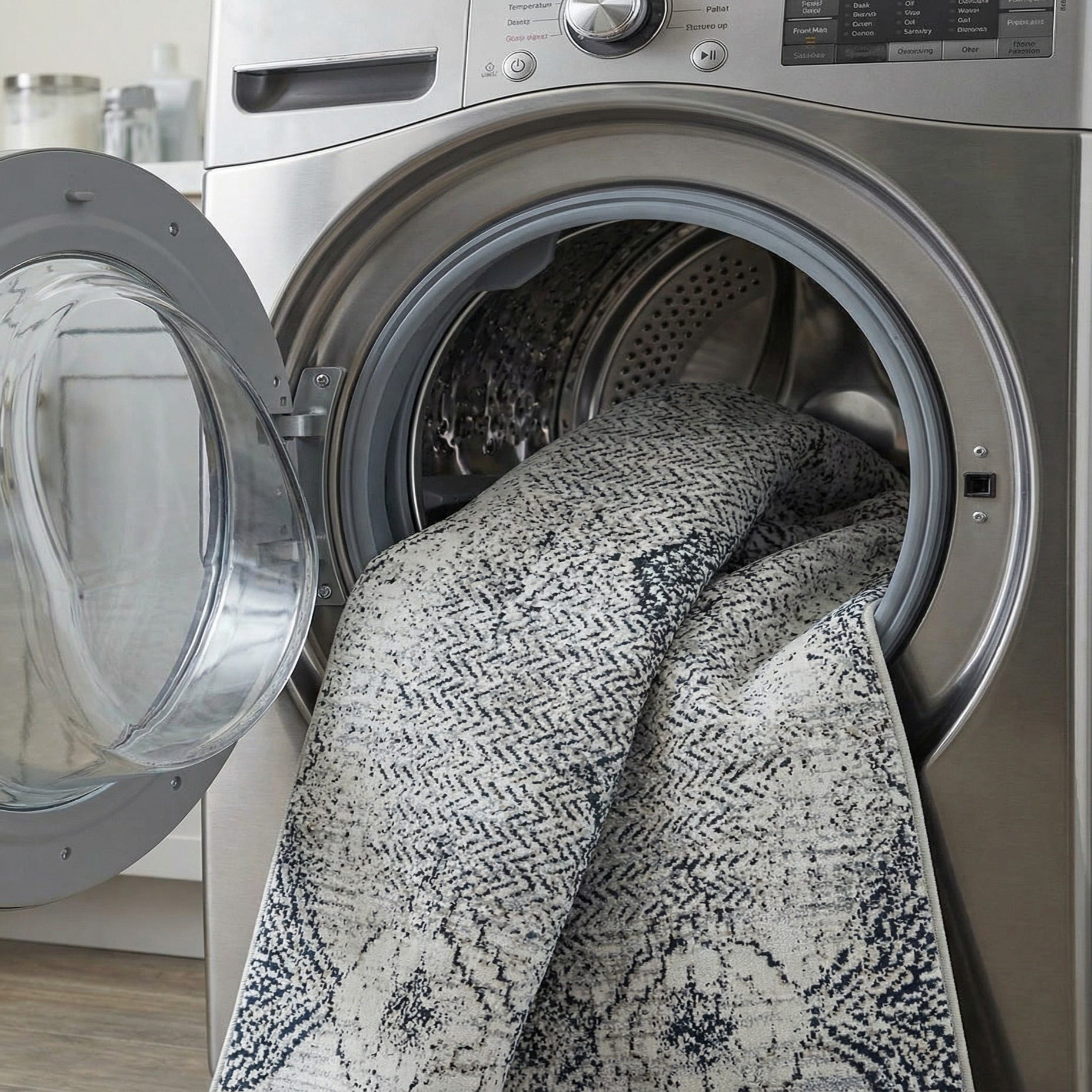 This rug pairs well with clean, modern interiors as well as relaxed, transitional spaces. Use it to anchor a seating area in a contemporary living room, slide it under a dining table to add graphic interest to a neutral palette, or layer it in a bedroom to balance warm wood and leather finishes. It complements minimalist, Scandinavian, and industrial styles and works especially well where a monochrome palette and subtle pattern can bring depth without overwhelming the room.