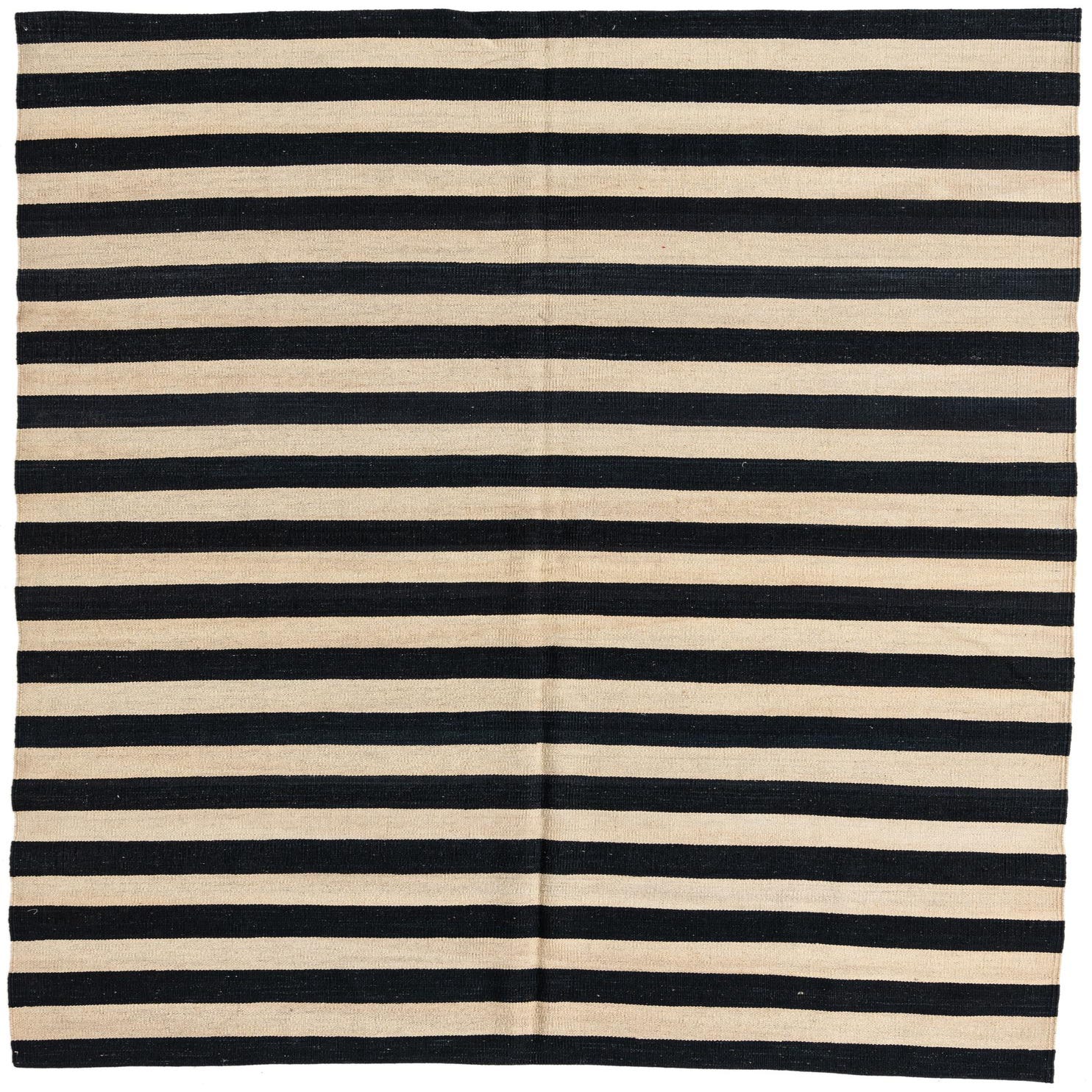 A 6x9 rectangular Kilim Modern wool rug featuring bold black and cream horizontal stripes, suitable for a living room.