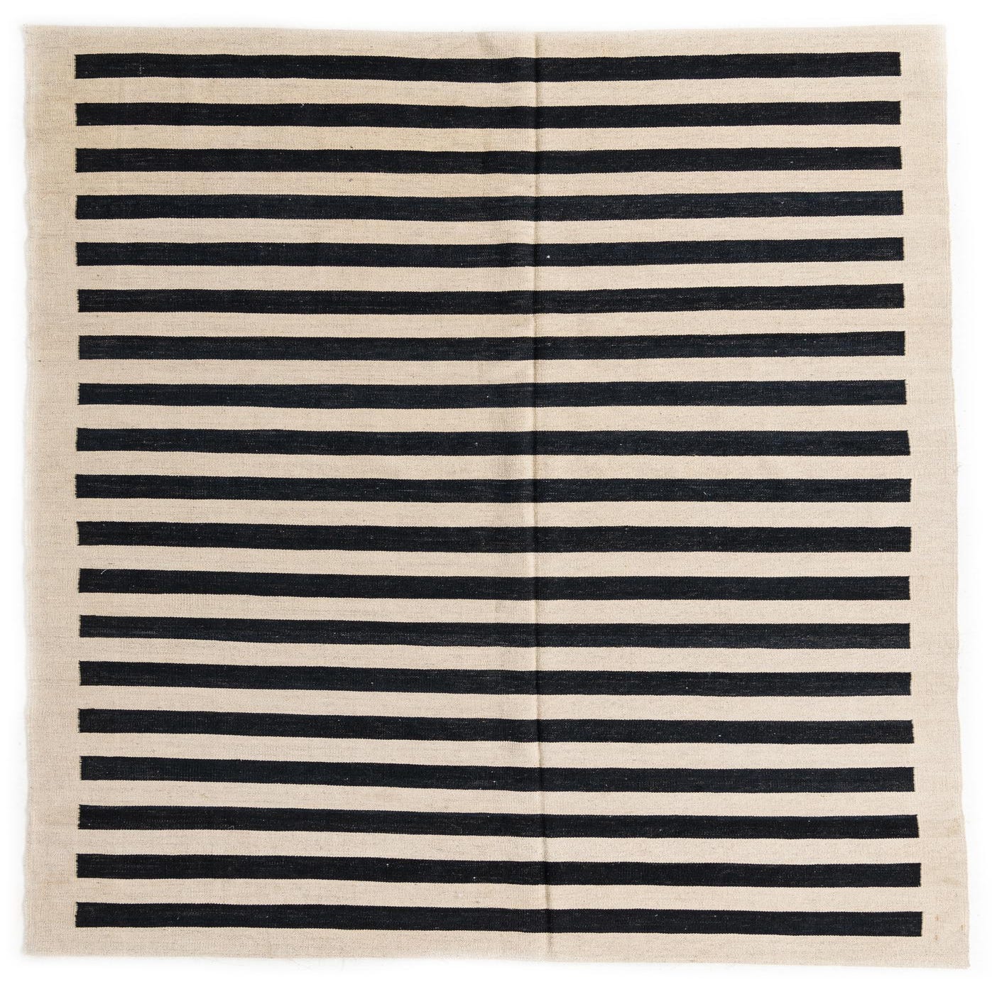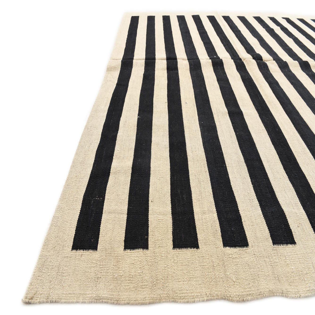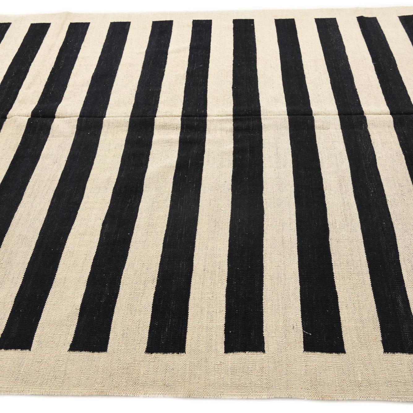 A 6x9 rectangular Kilim Modern rug from Rugs.com featuring bold black and cream horizontal stripes, perfect for a living room.