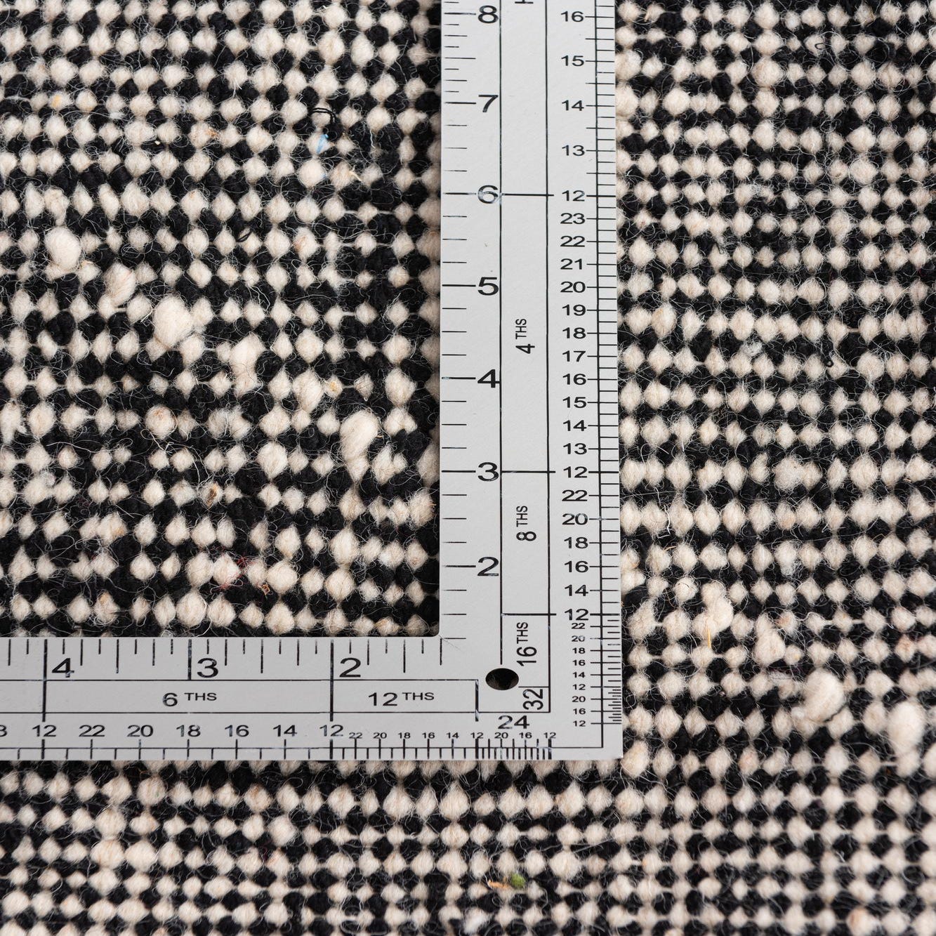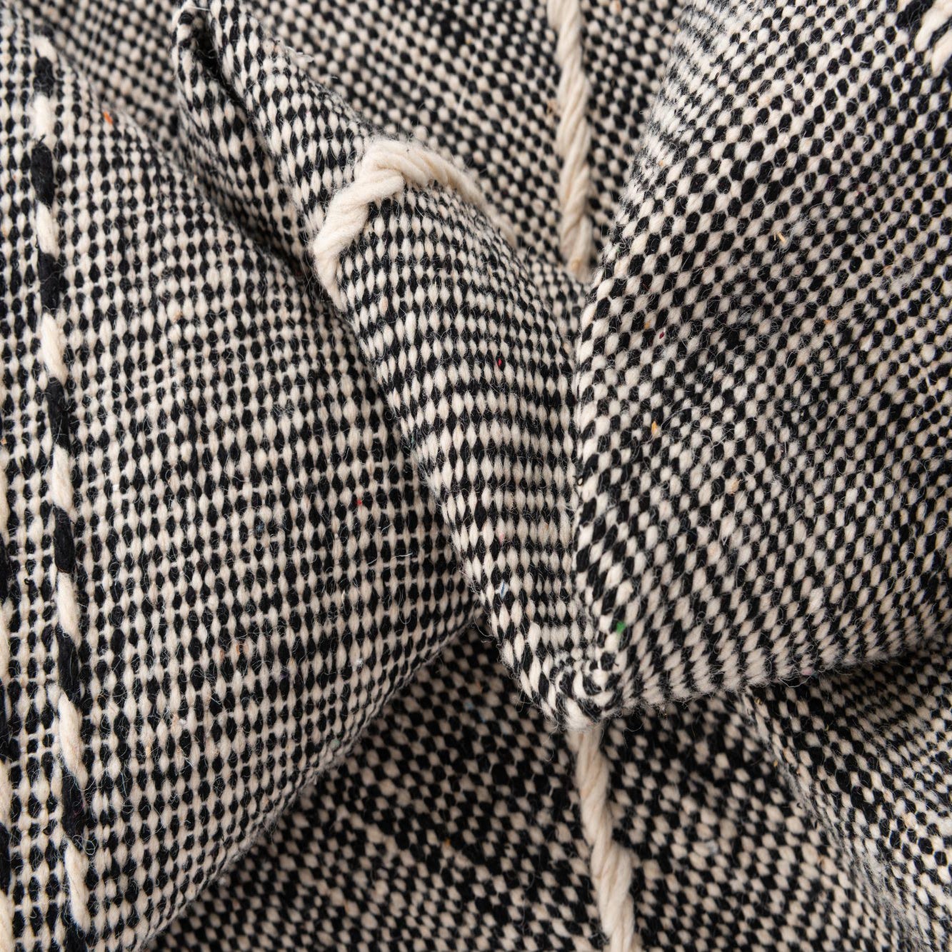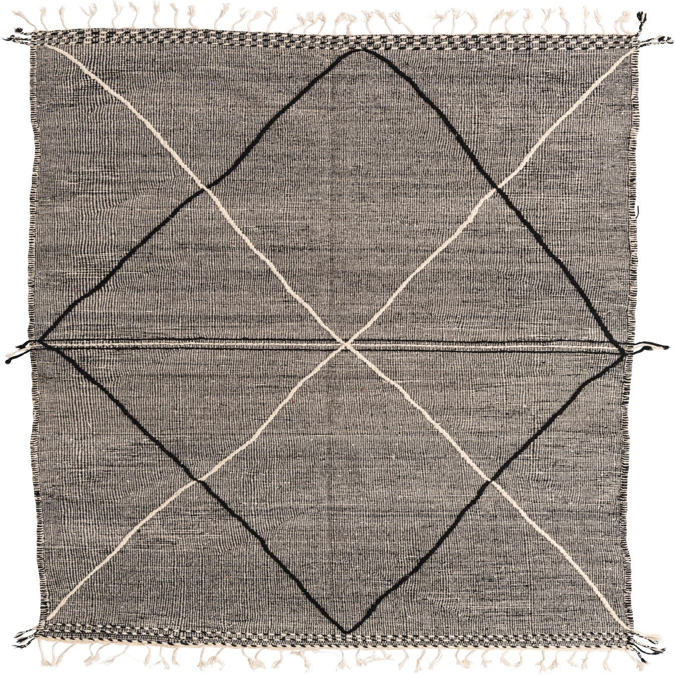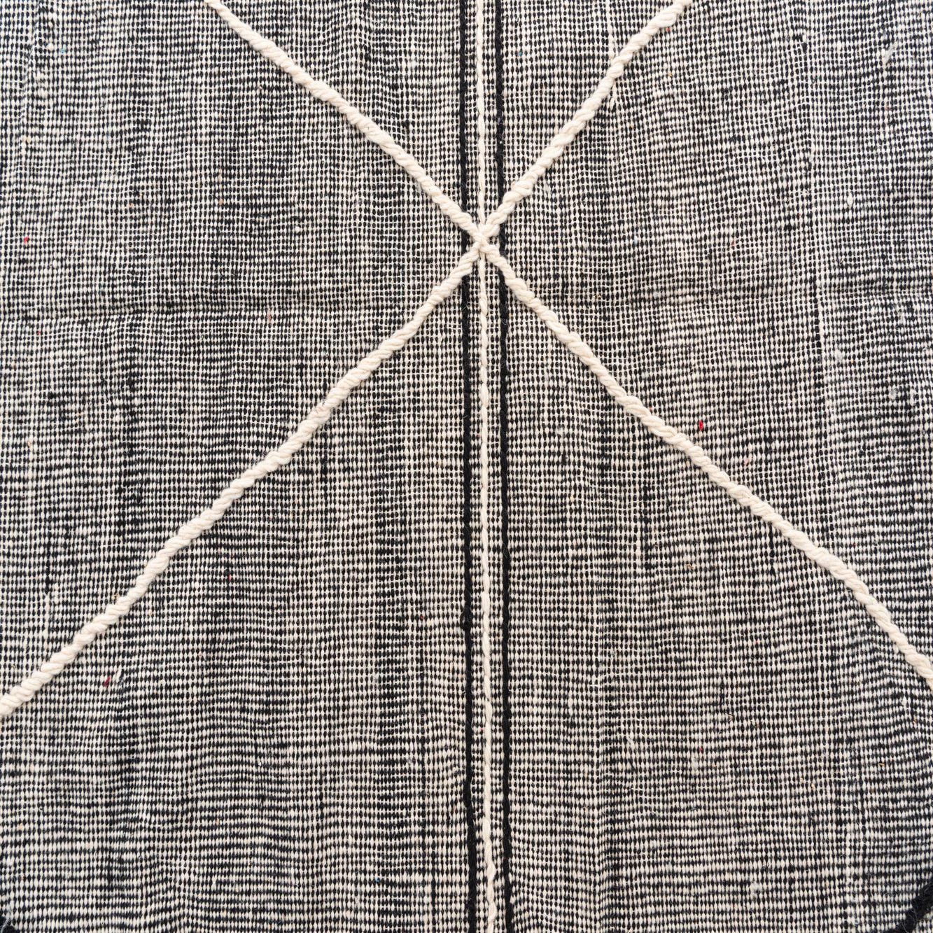 The simplicity of the design offers a broad range of styling possibilities, suitable for interiors from the minimalist and contemporary to the eclectic and bohemian. The pronounced black and white theme allows for effortless coordination with both neutral and vibrant color schemes. The fringe detailing contributes to its authentic handmade charm, framing the rug with a casual, yet refined finish.