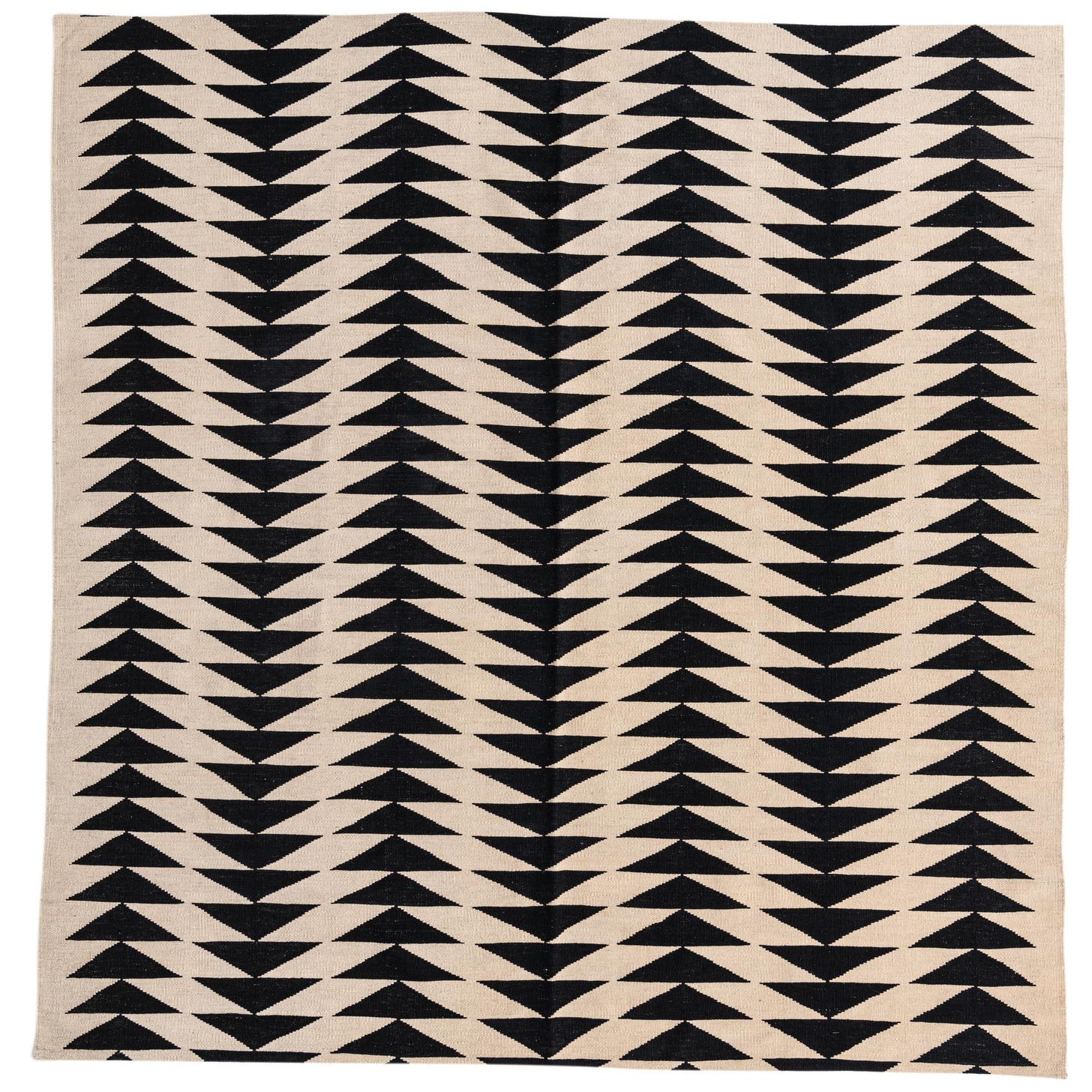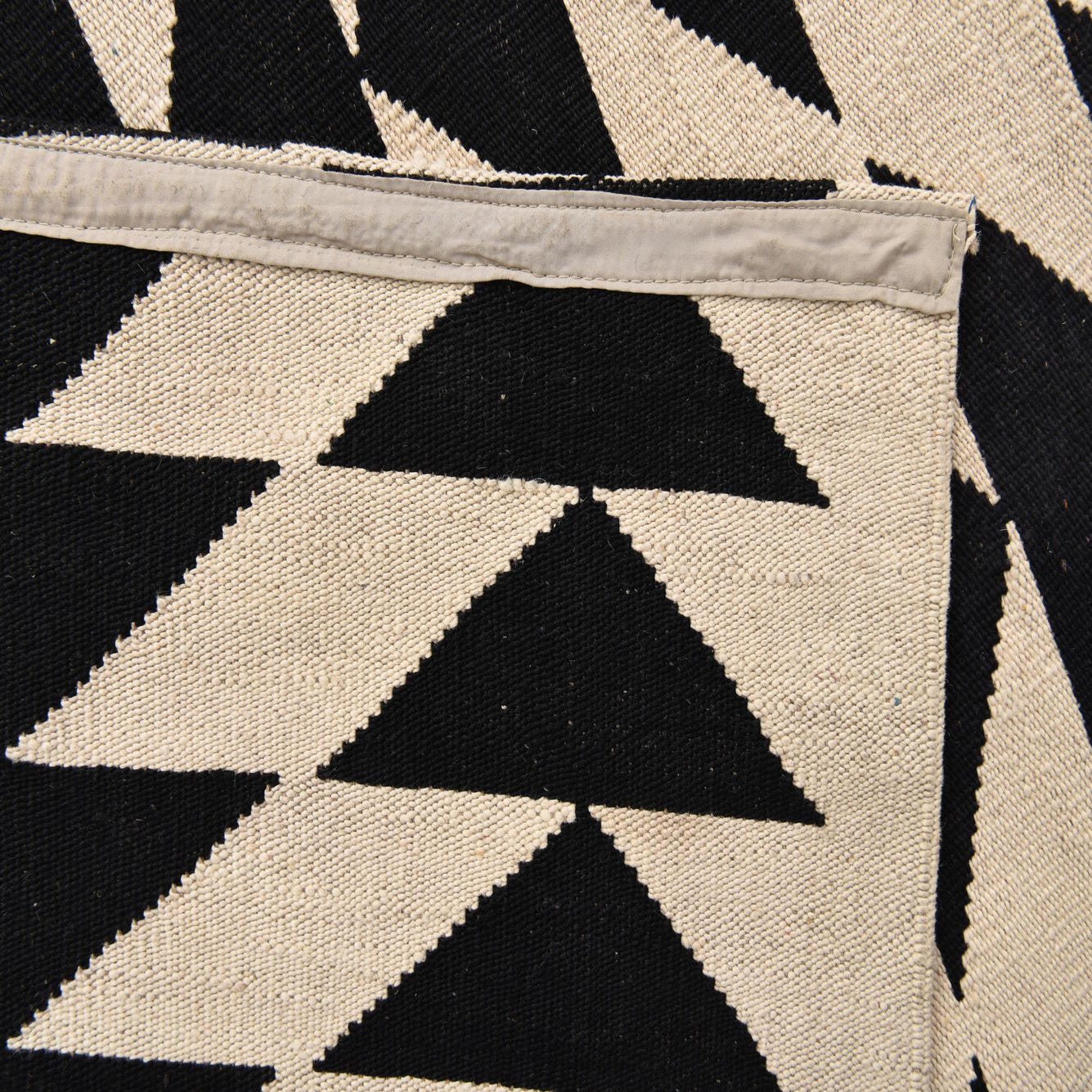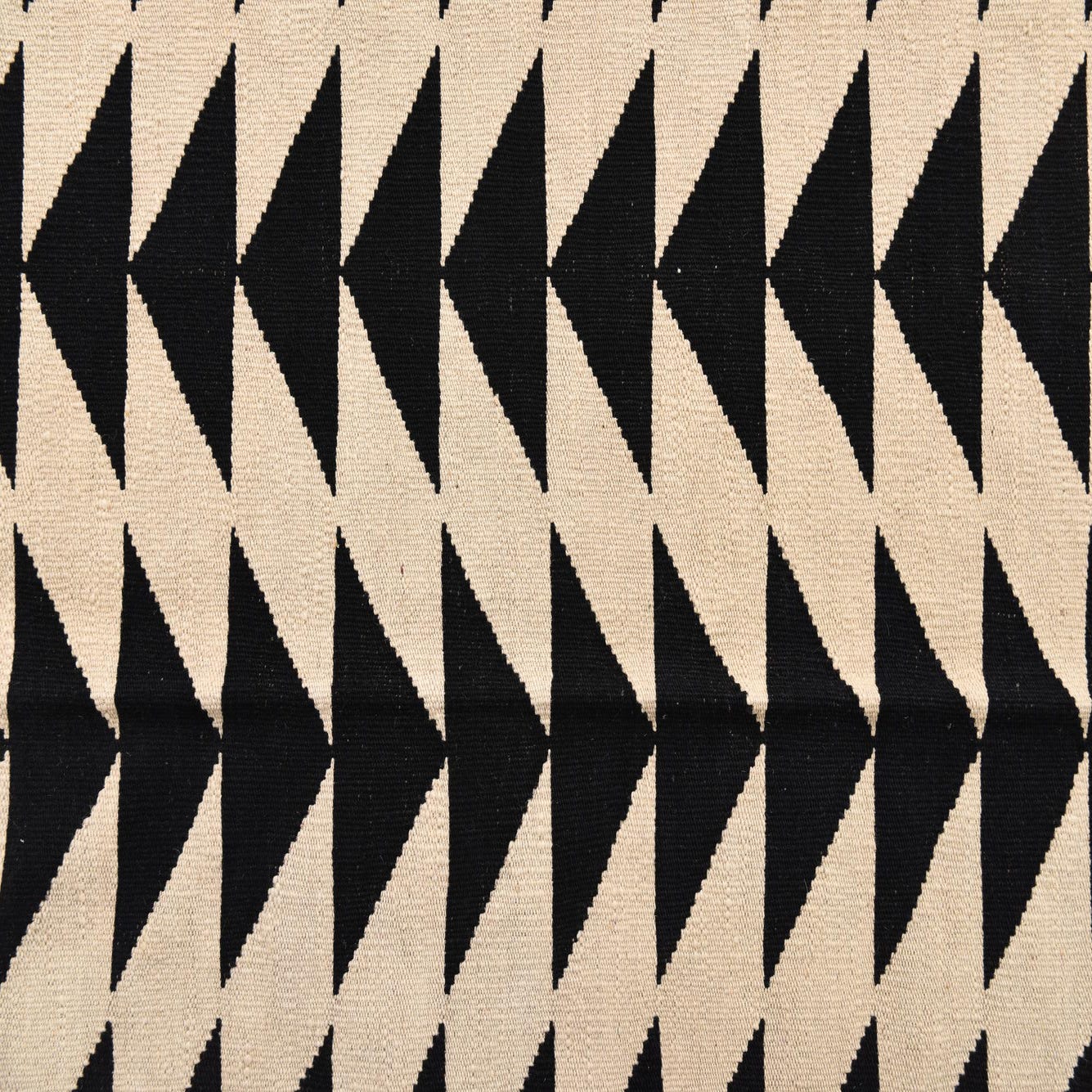 A 7x10 rectangular flatweave rug featuring a bold pattern of black triangles on an ivory background, creating a modern tribal look.