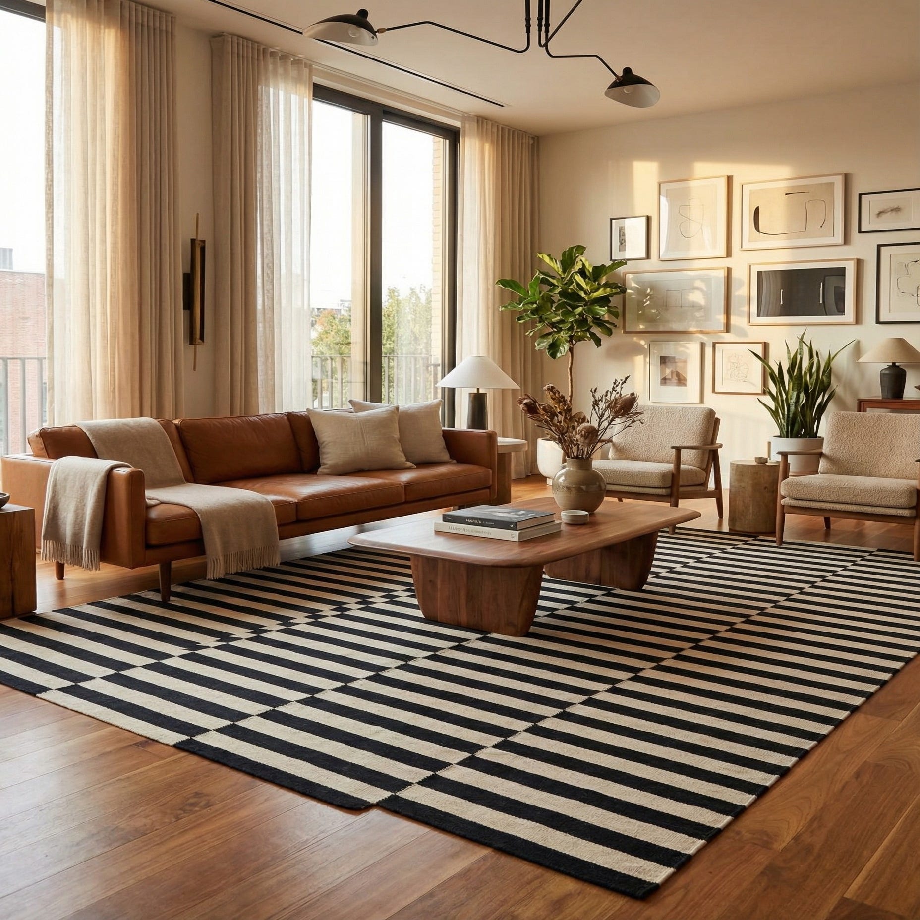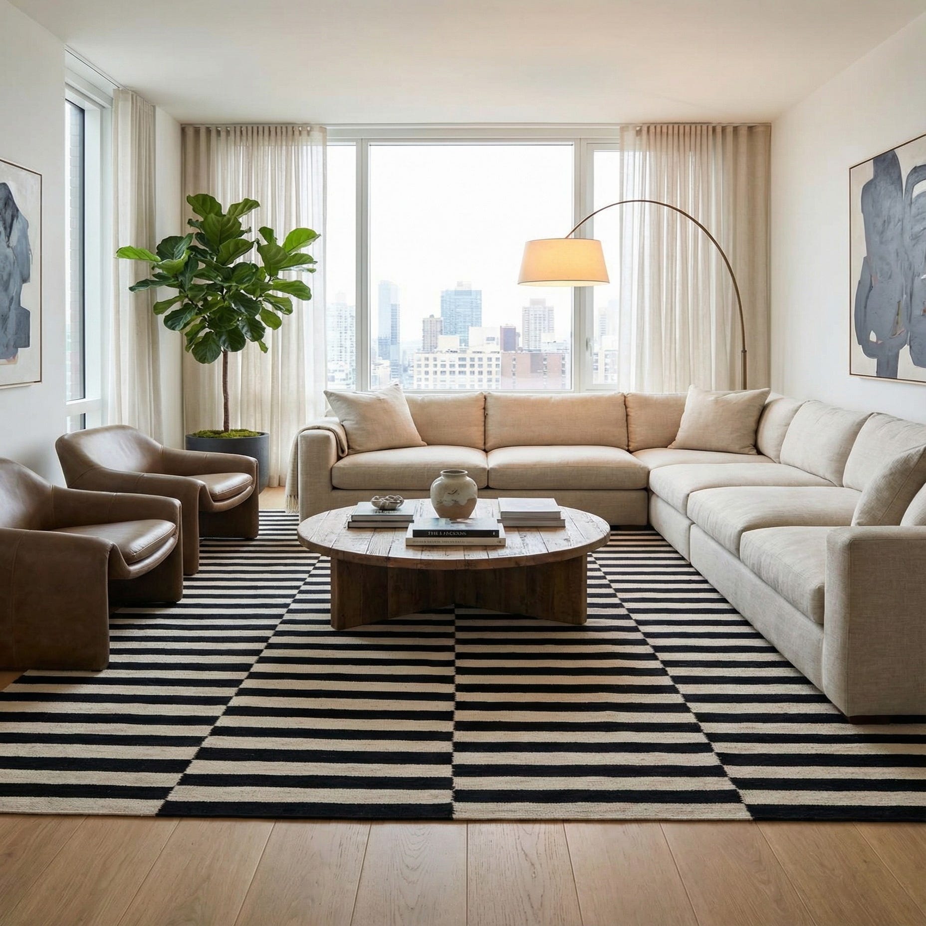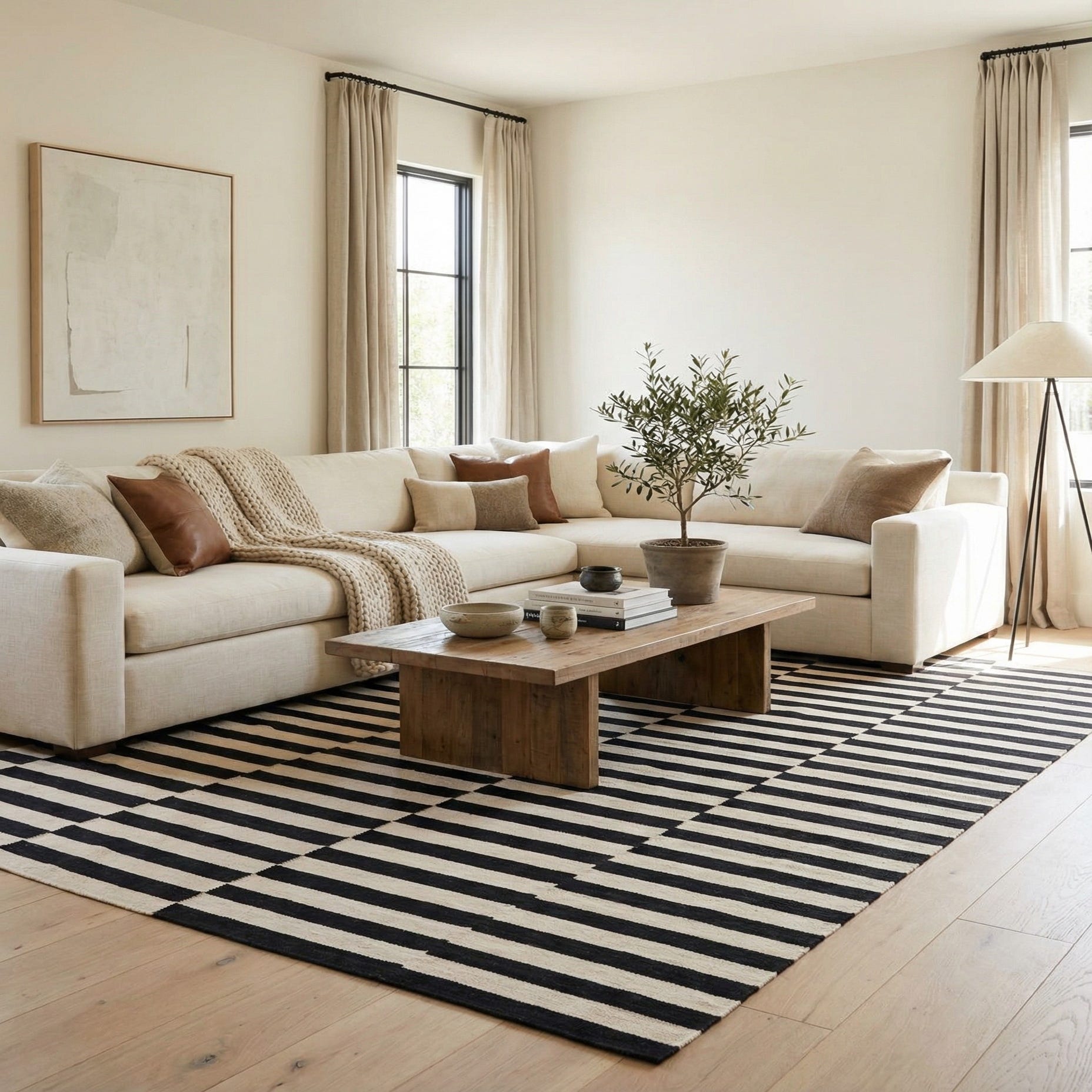 Its timeless design and monochromatic scheme make it versatile for a variety of interior settings. This rug would seamlessly integrate with minimalist decors, complement modern or Scandinavian-inspired spaces, and could also serve as a striking juxtaposition in more traditional or eclectic interiors.
