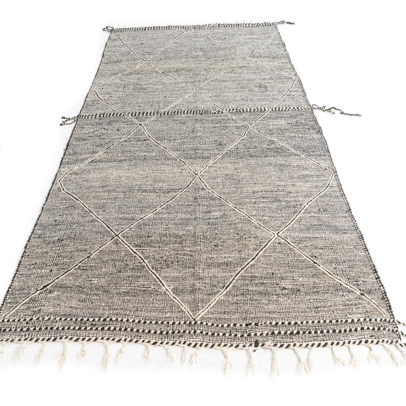 With its pronounced texture and timeless pattern, this Moroccan hand-knotted wool rug is a substantial addition to a living room, dining area, or spacious foyer, ready to enhance the ambiance with its understated elegance and cultural resonance.