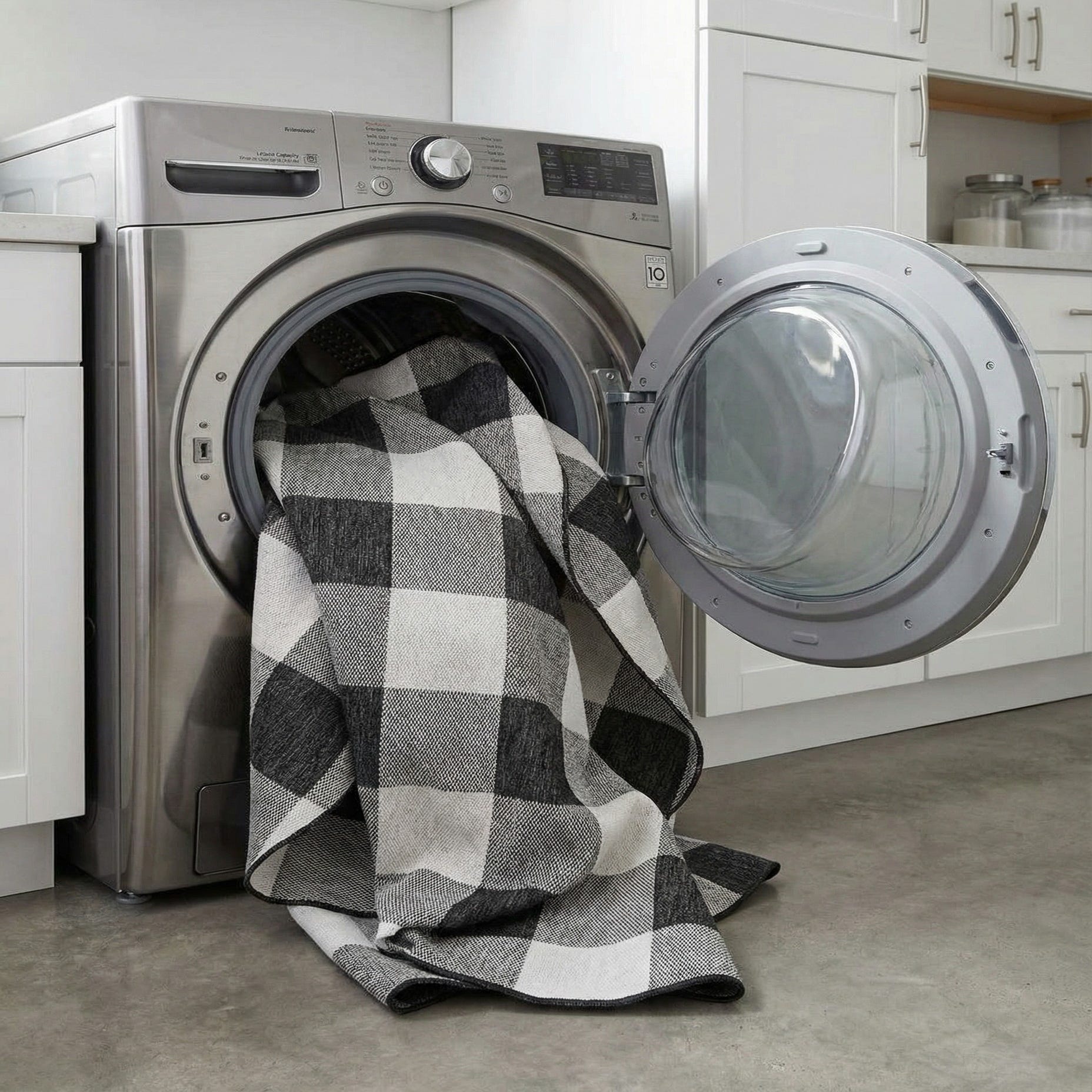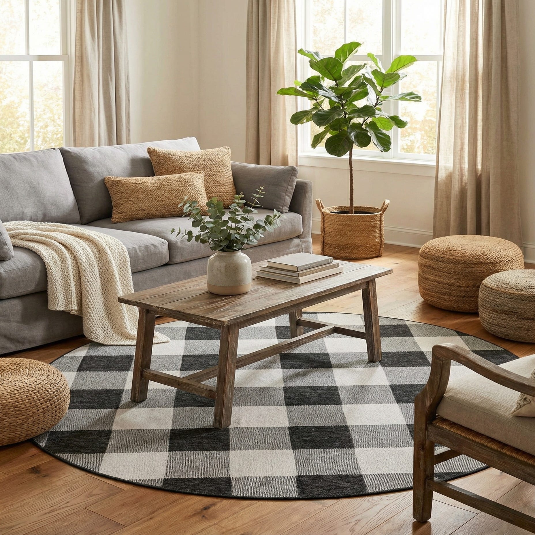 7' 10 x 7' 10 Washable Checkered Indoor / Outdoor Round Rug