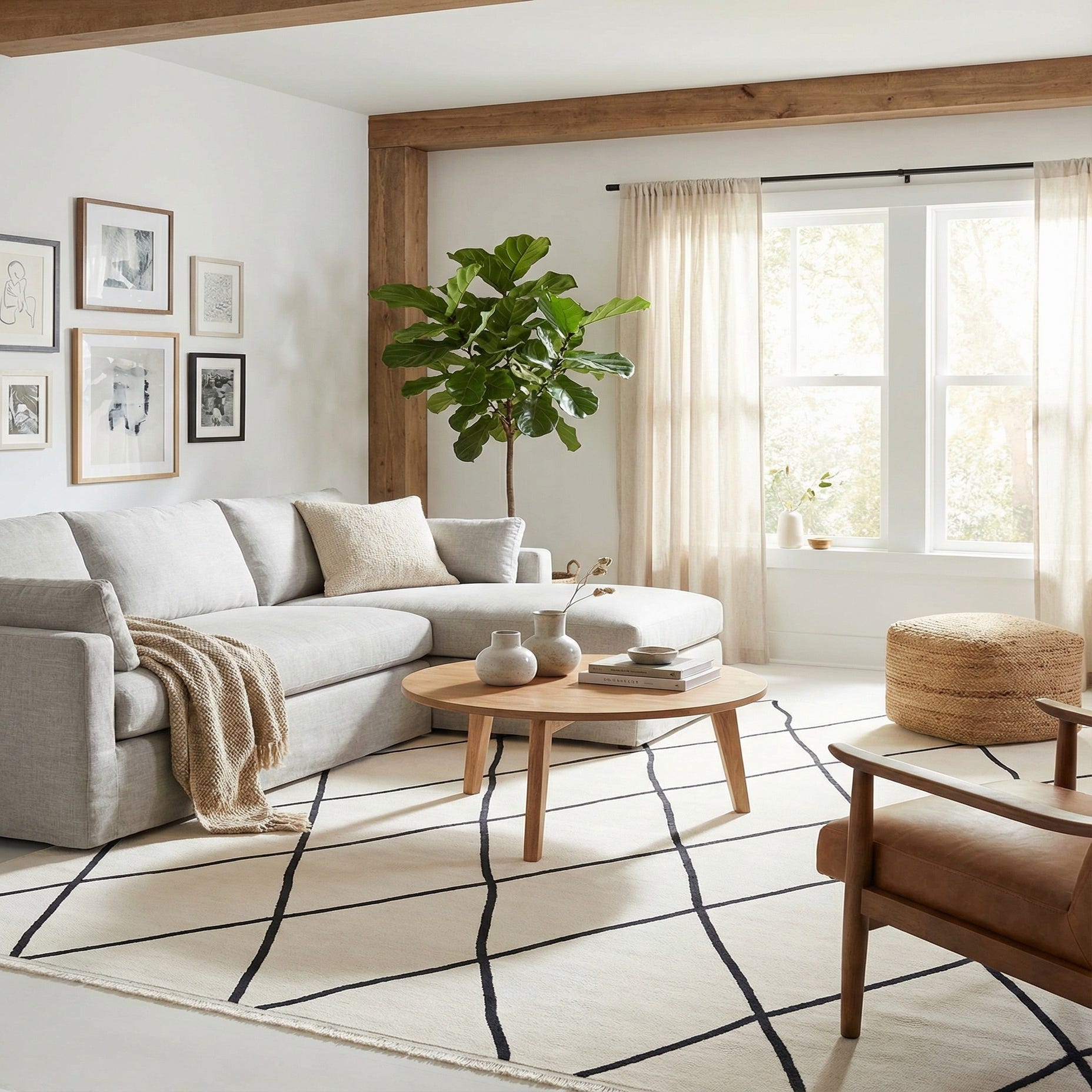 Place this piece to define a seating area in a living room, anchor a dining table, or layer it under a bed for a streamlined bedroom layout. It pairs naturally with light woods and neutral upholstery for a Scandinavian or contemporary vibe, and offers a strong, calm backdrop when combined with textured throws, leather accents, or matte metal finishes in transitional spaces.