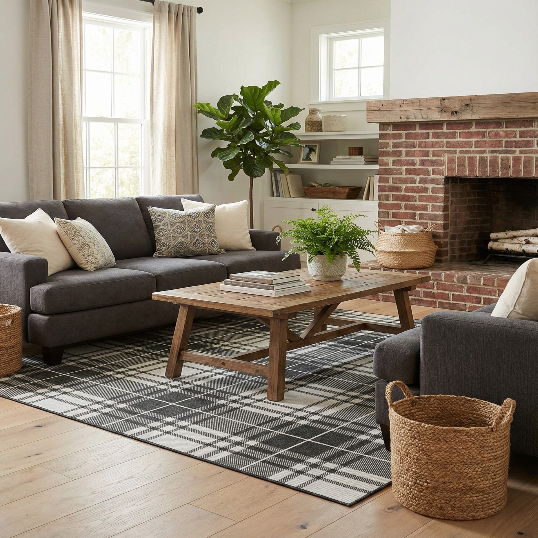 The rug's flatweave construction ensures a smooth texture and easy maintenance, making it an exceptional choice for those with pets or the need for a shed-free option. The distinct checkered design can effortlessly complement a variety of decor styles, particularly suited for contemporary, modern, or transitional spaces.