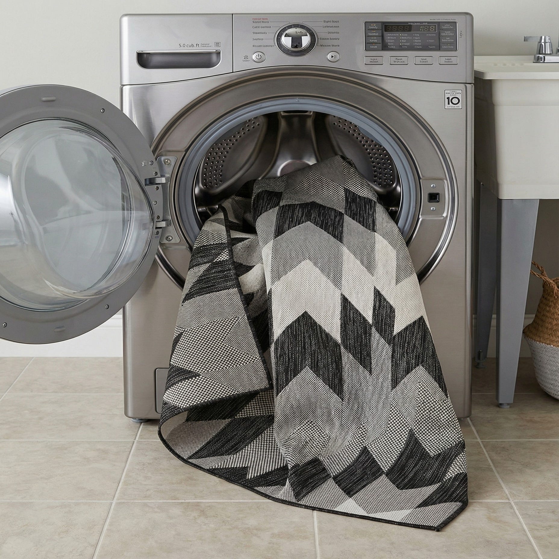 Primary color is Black and White. Colors in this rug include: Black and White, Gray.
