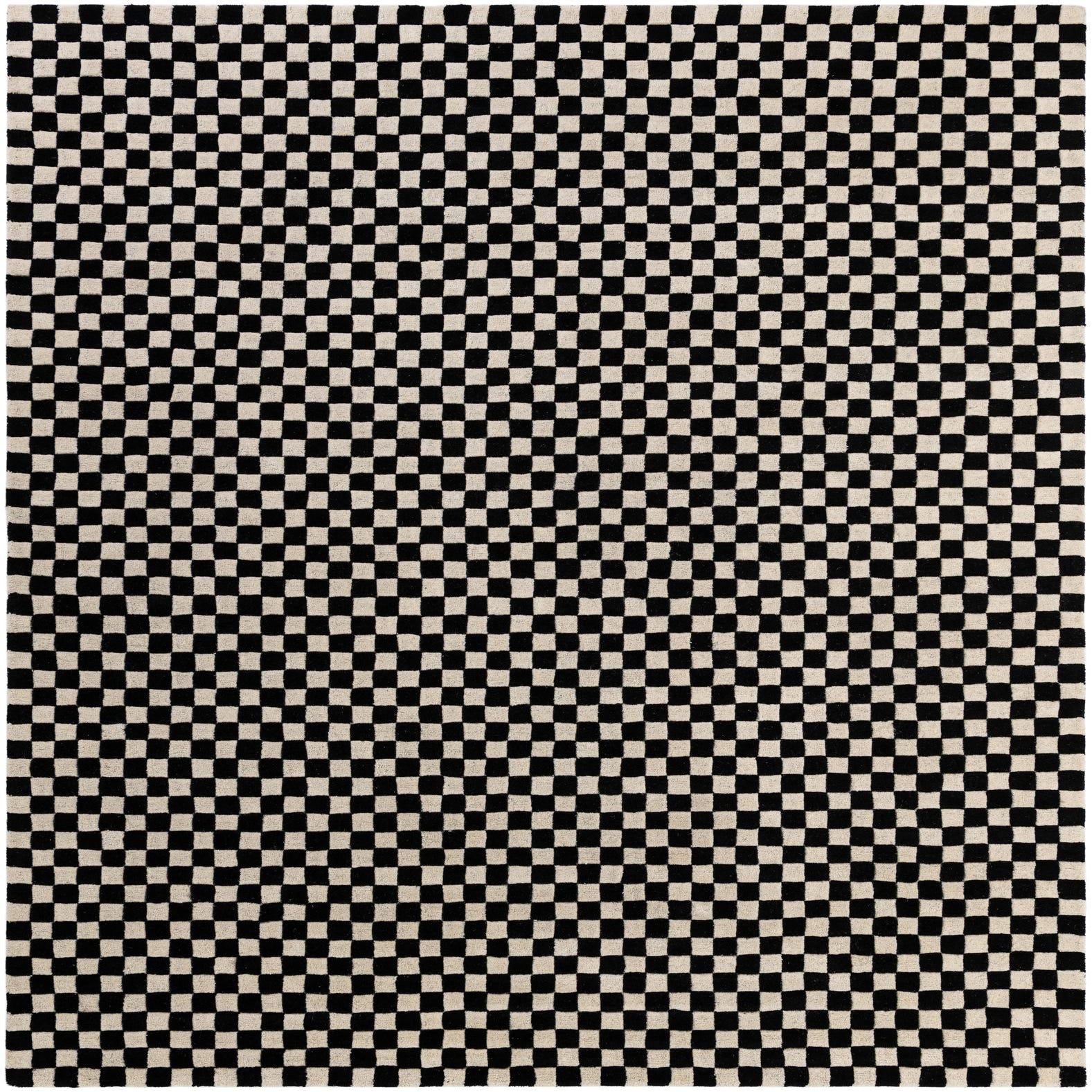 A compact checkerboard of alternating black and white squares gives this rug a crisp, graphic presence. Hand-tufted from 100% wool, the surface has a comfortable, slightly plush pile with a firm, dense feel underfoot; the tufting creates clean, defined edges at each square and a subtle, tactile texture where the colors meet. The bold black-and-white contrast keeps the pattern striking while remaining versatile within a variety of interiors.