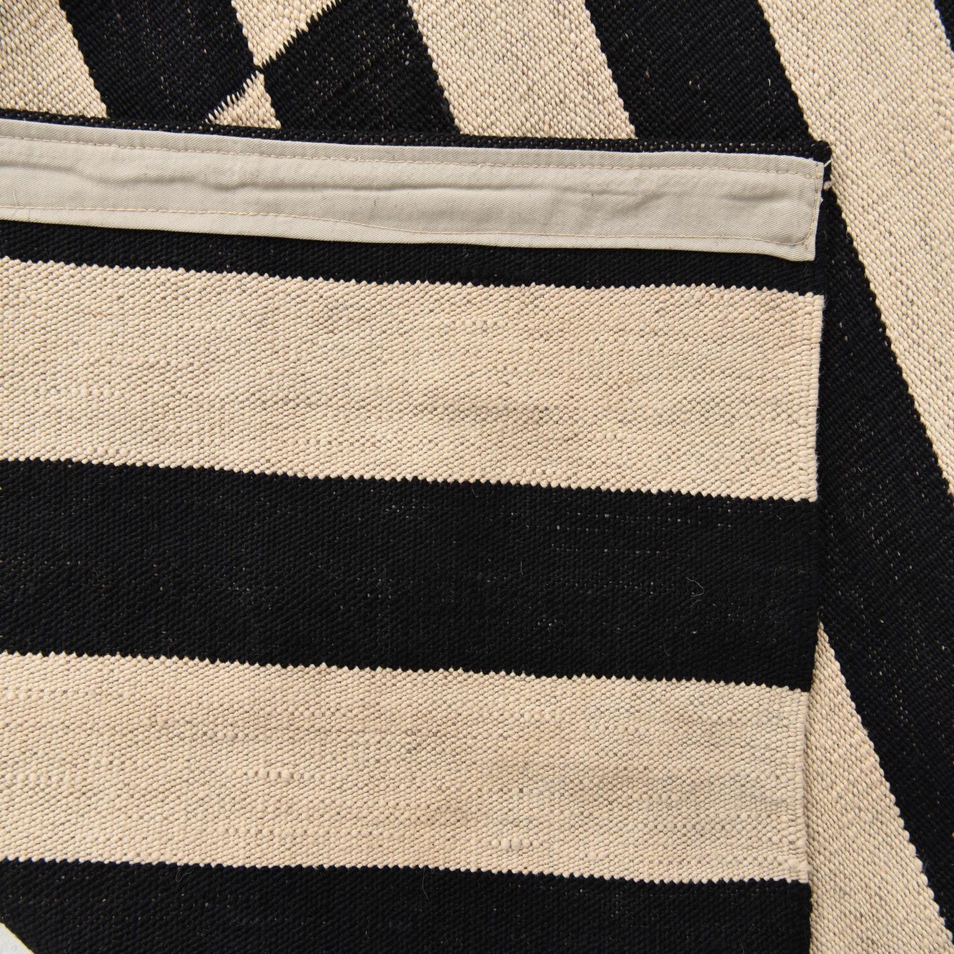 This rug's stark contrast and clean lines make it versatile enough to complement minimalist, monochromatic interiors or to provide a balanced backdrop for more eclectic and colorful furnishing choices. The simplicity of its pattern allows it to blend seamlessly in a Scandinavian-inspired space or serve as a counterpoint in an industrial setting with exposed materials and metallic accents. Additionally, its neutral color scheme enables it to fit comfortably within coastal-inspired decor, complementing natural textures and a serene palette.
