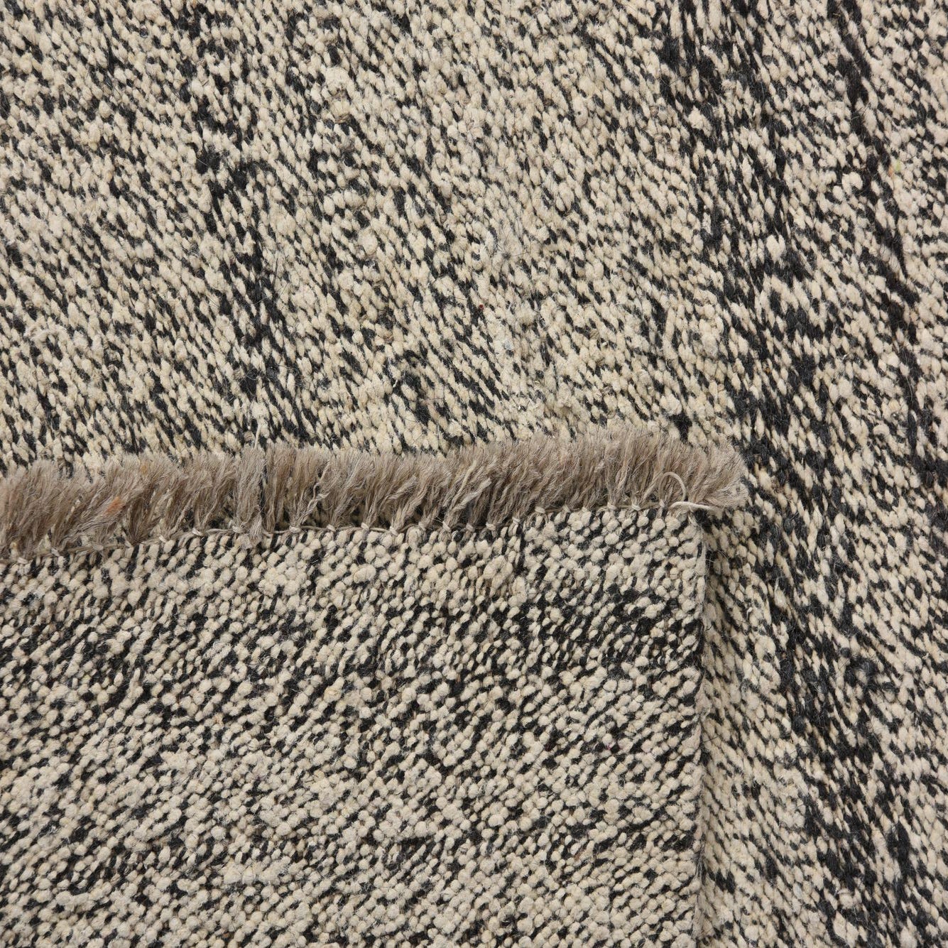 The Kilim Modern collection presents a hand-woven 8x10 area rug crafted from 100% wool, designed to deliver both comfort and durability. This rug showcases a primarily black and white color scheme, with a series of horizontal bands that create a gradient effect from light to dark tones. The pattern is uncomplicated and clean, exuding a minimalist aesthetic that suits contemporary spaces.