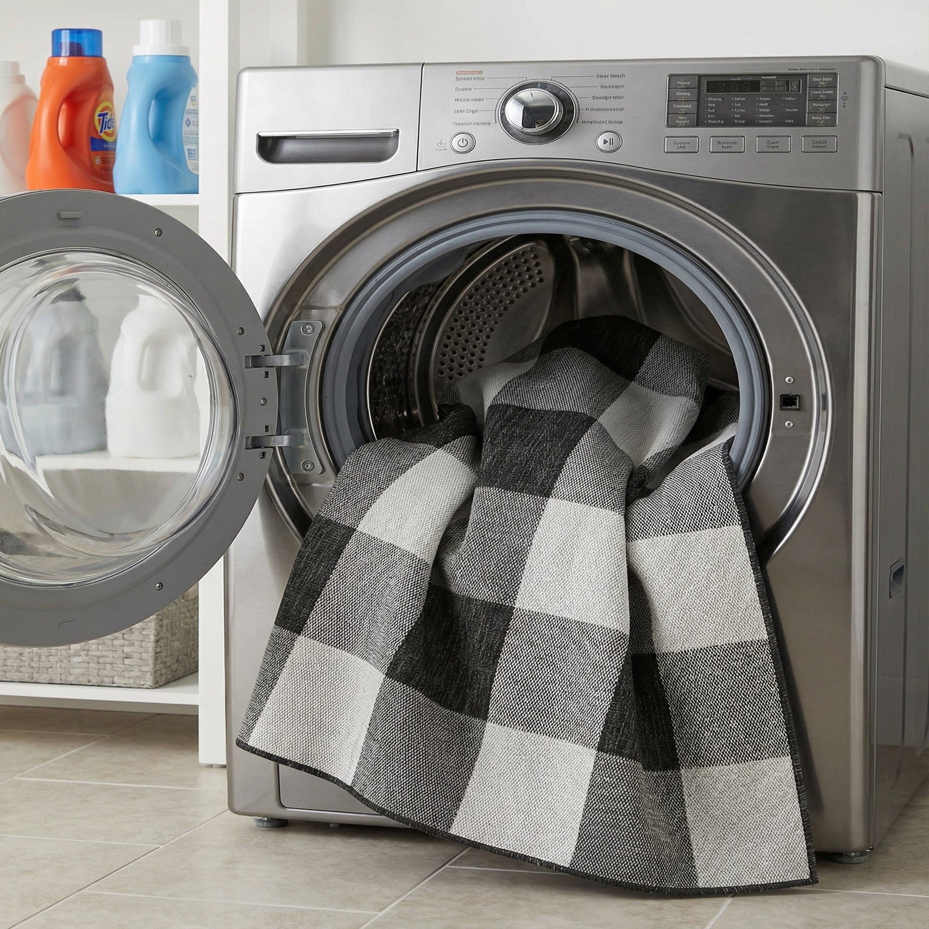 Detail image of  7' 10 x 10'  Washable Checkered Indoor / Outdoor Rug