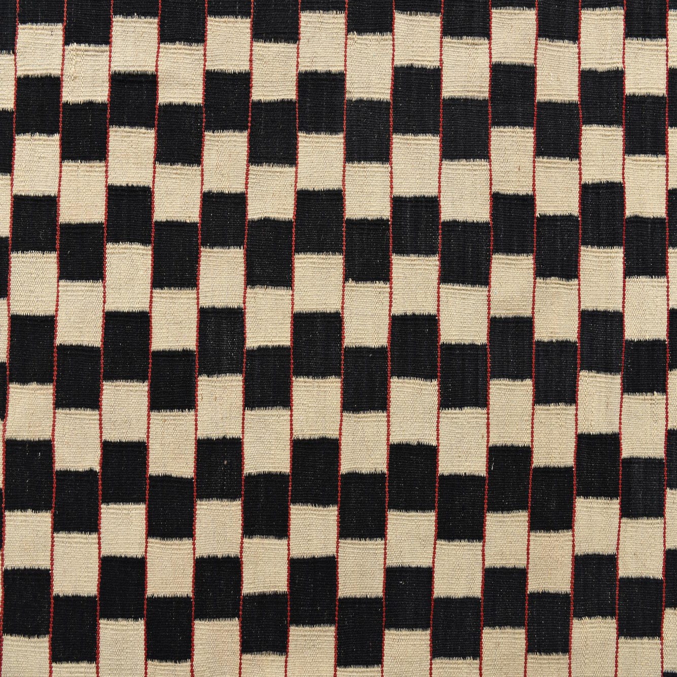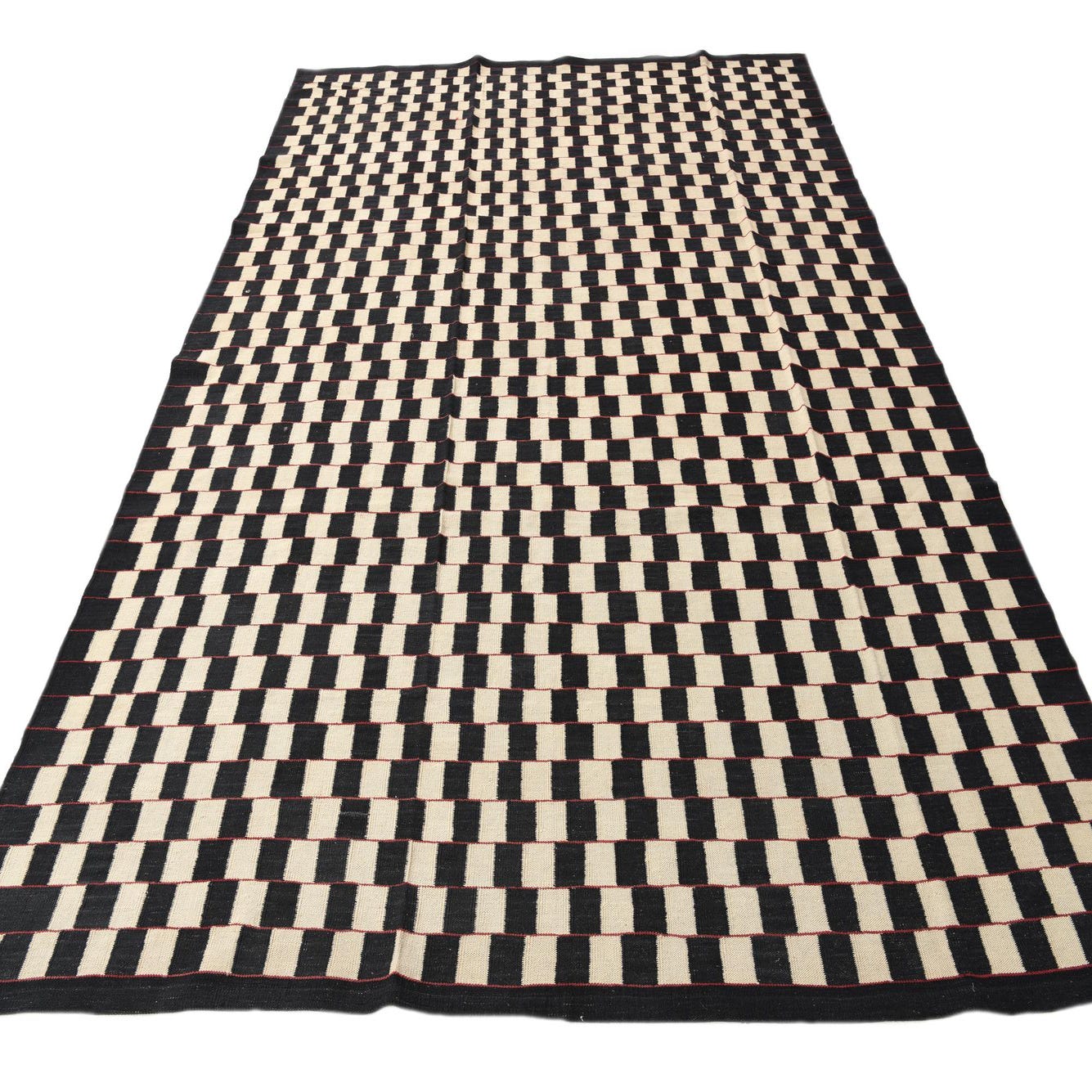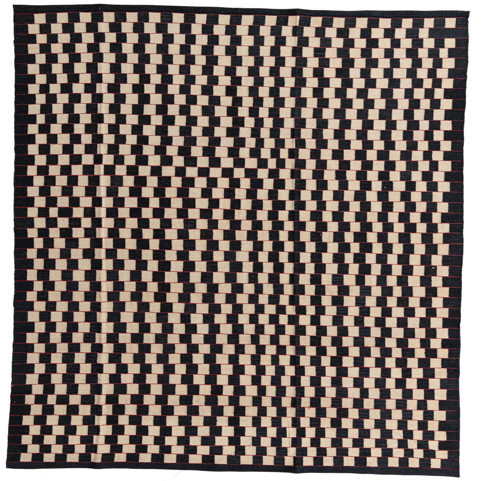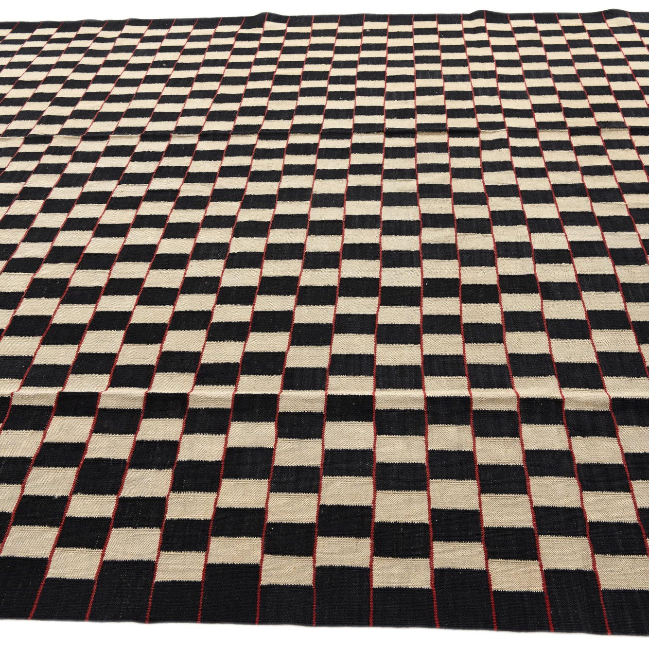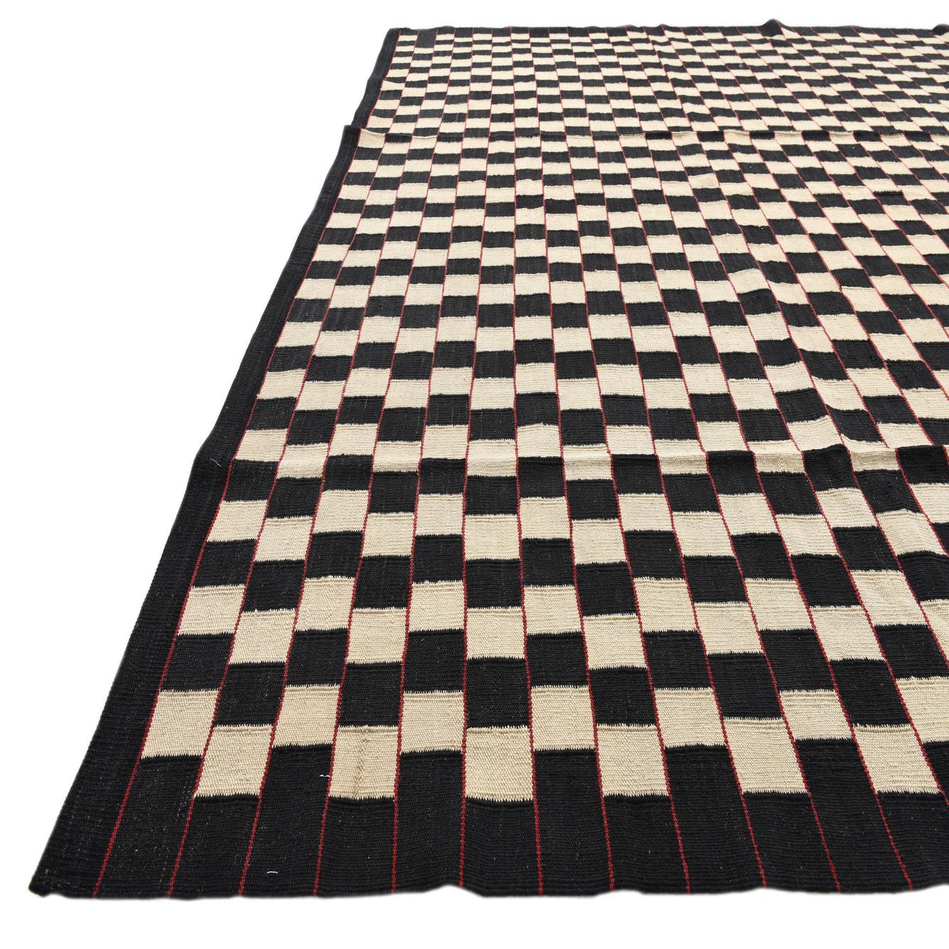 An 8x11 rectangular Kilim Modern wool rug featuring a repeating black and cream checkerboard pattern, handmade with a flatweave.