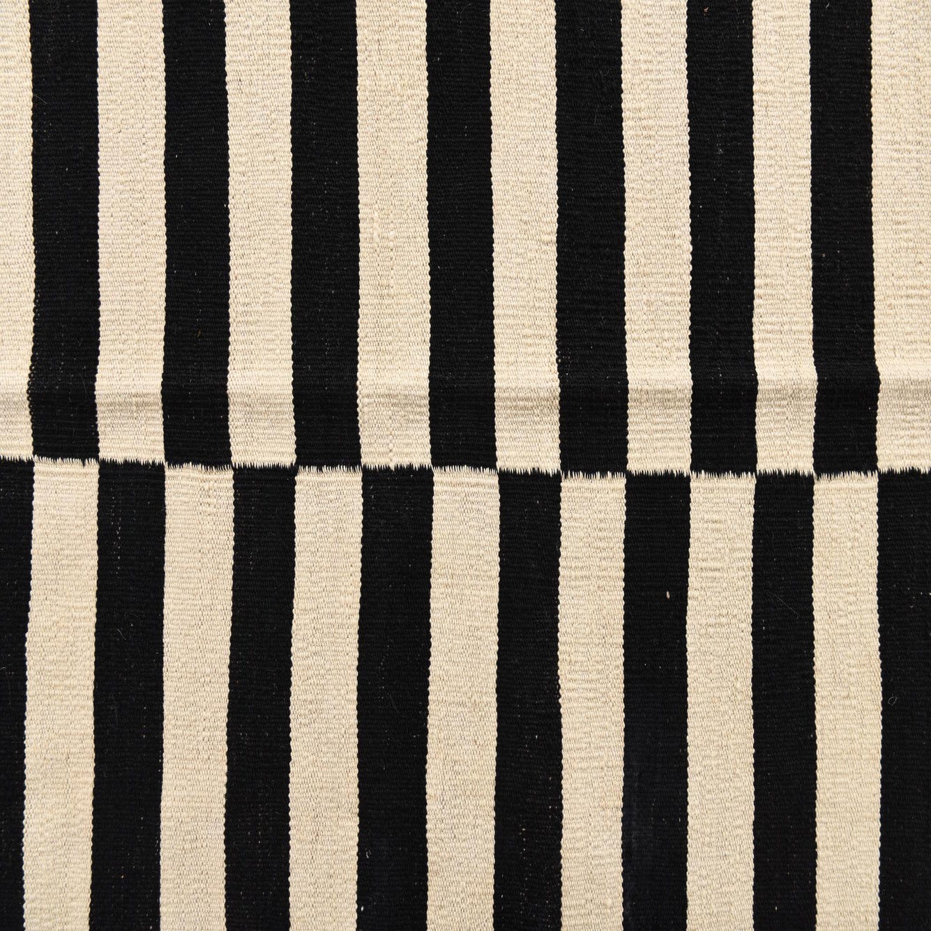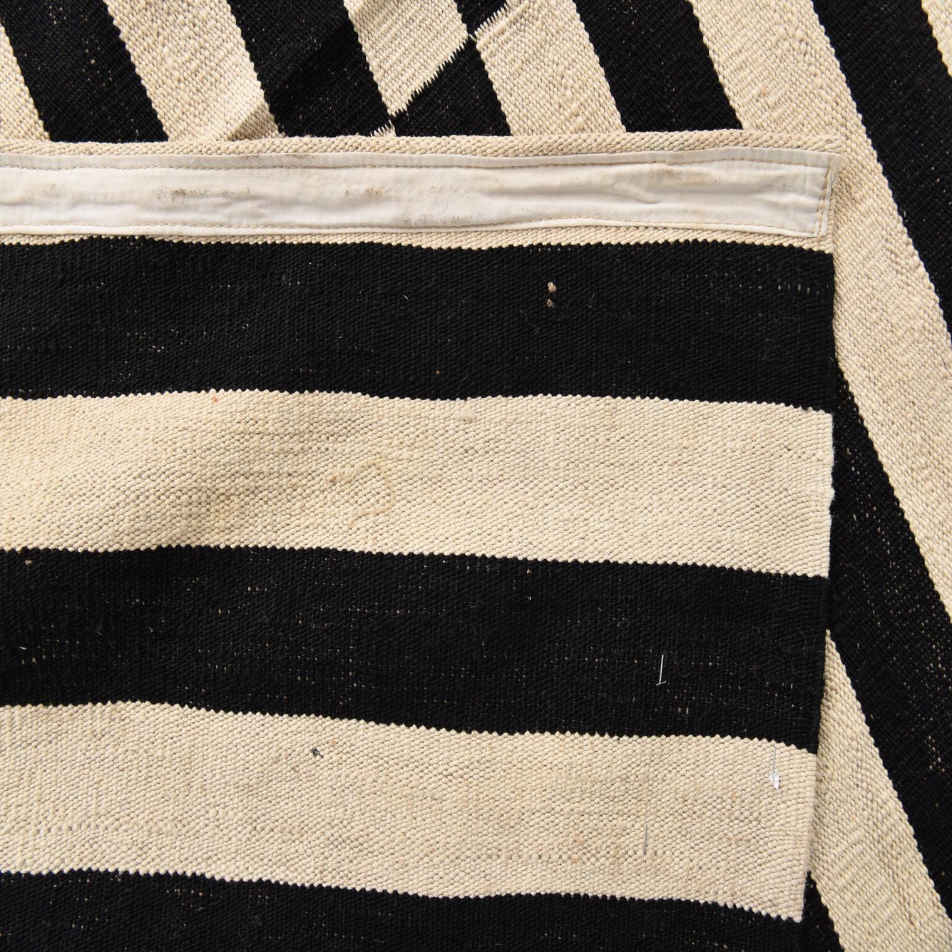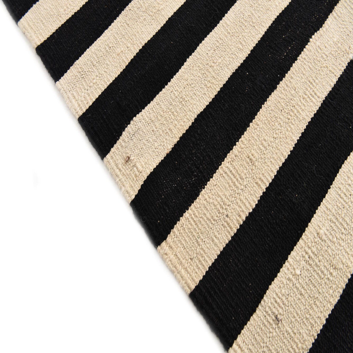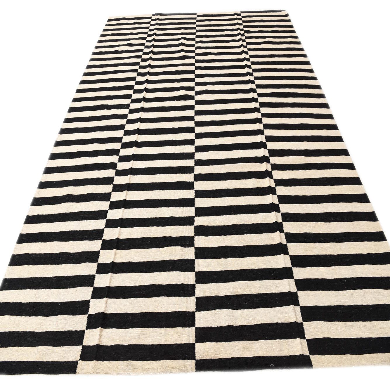 The Kilim Modern collection presents a hand-woven rug featuring a bold black and white striped pattern. Crafted from 100% wool, this 8x11 rug lends a tactile comfort and a durable finish suited for various interior settings. The contrasting stripes provide a graphical element that can anchor a room's aesthetic and add visual interest. With its black and white palette, this piece is versatile, making it an excellent choice for contemporary, minimalist, or Scandinavian-inspired decors. Additionally, it could serve as a striking counterpoint in eclectic or bohemian interiors, where its pattern can complement more textured or colorful elements.