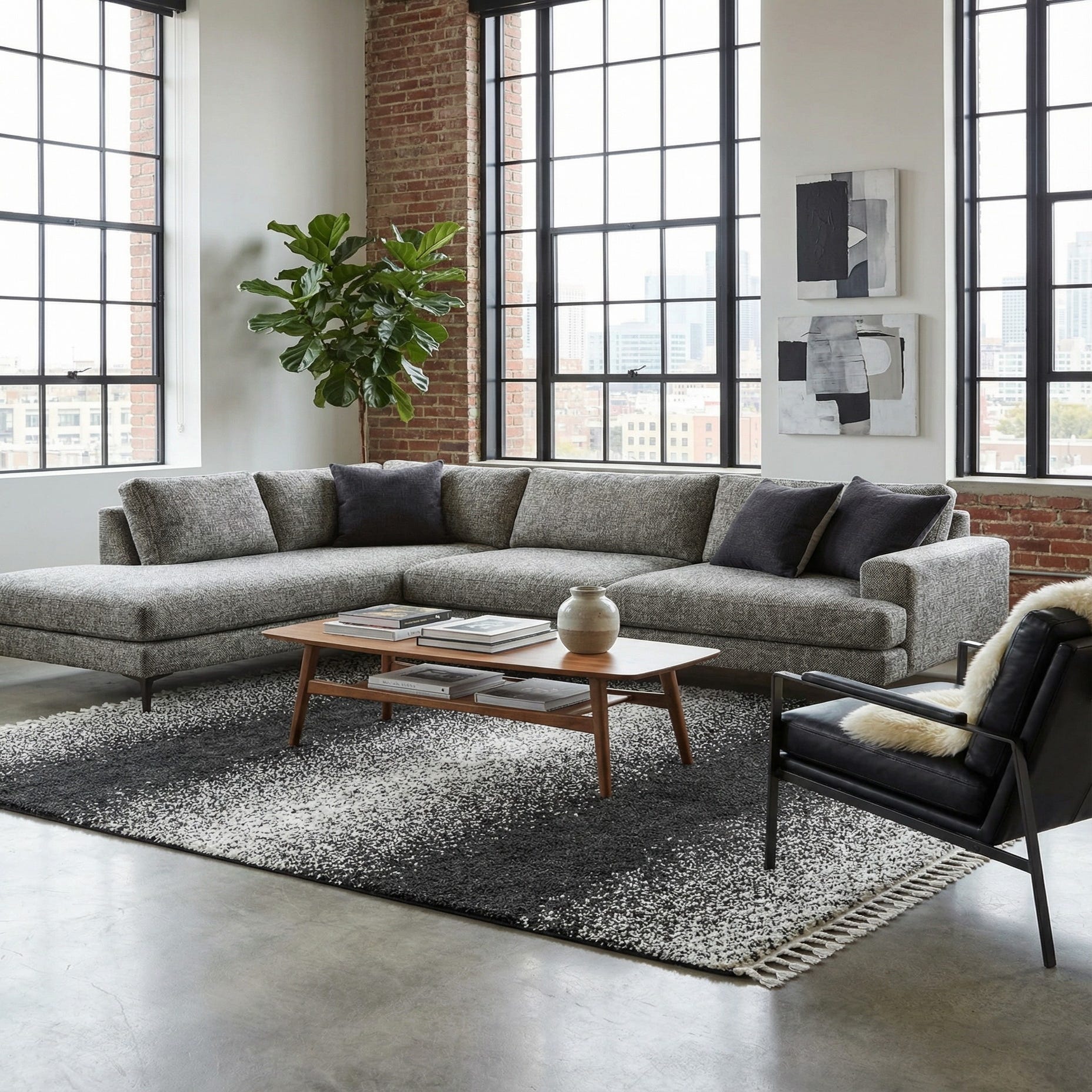 This rug suits contemporary and minimalist interiors—place it beneath a seating group to anchor a living room, layer it in a bedroom for a soft landing by the bed, or use it in a media room to add contrast to neutral furniture. It pairs well with natural woods, black metal accents, leather pieces, and cool-toned textiles, making it an easy choice for modern, Scandinavian, or industrial-leaning spaces.