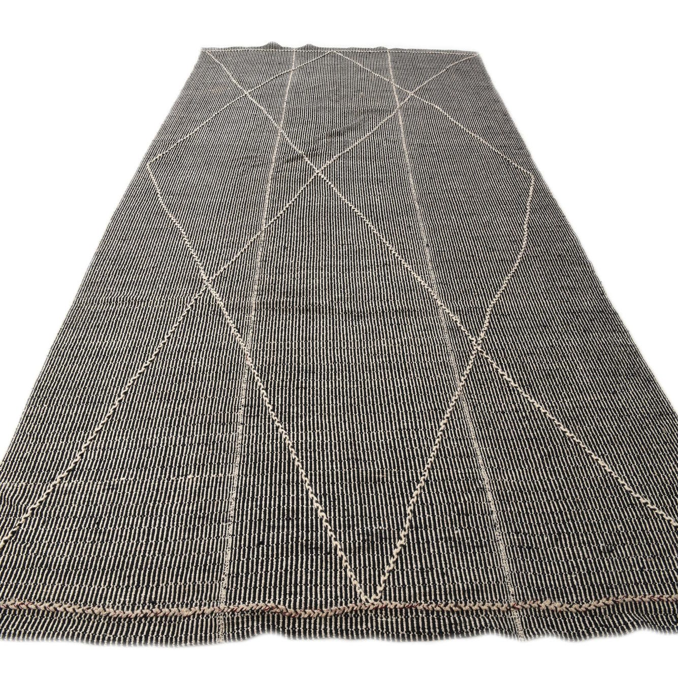 A 9x12 rectangular Darya rug with a black and white striped base and a large ivory diamond pattern, suitable for a living room.