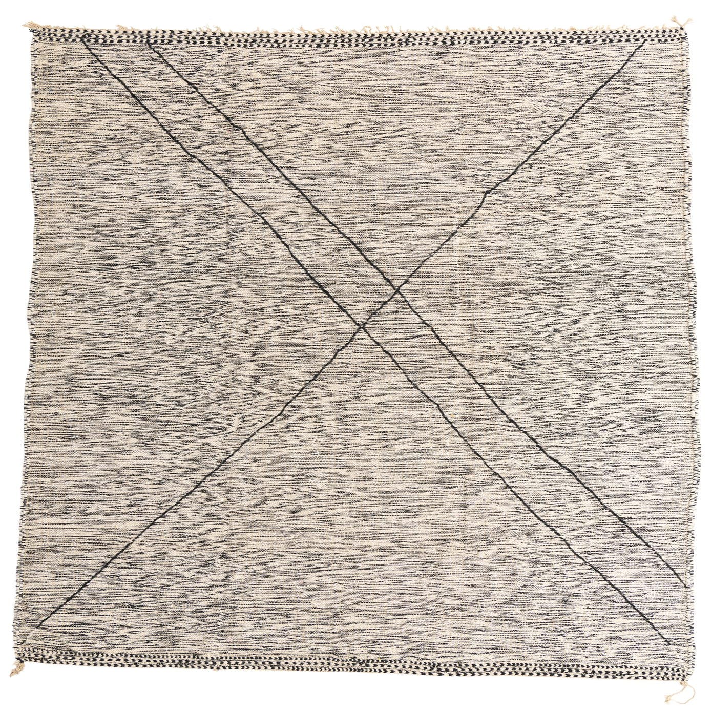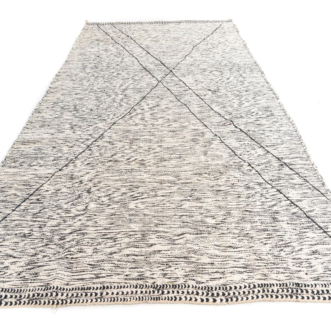 This Moroccan collection rug embodies the time-honored tradition of hand-knotted craftsmanship, constructed with 100% wool to ensure lasting durability and a soft underfoot experience. Spanning an ample 9x12 feet, the piece features a black and white color palette that provides a striking contrast and versatile backdrop for a range of interior styles.