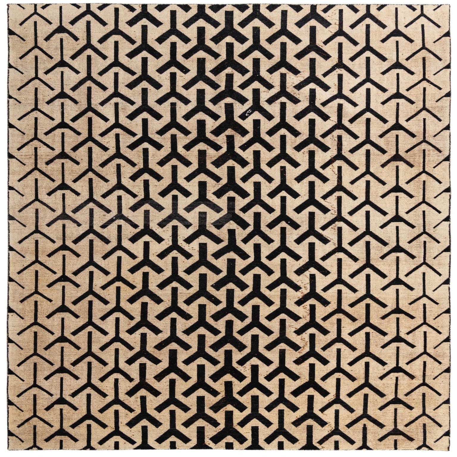 At a substantial size of 9x12 feet, this rug is well-suited for spacious living areas, open floor plans, or under a large dining table. The distinct pattern and monochromatic palette make it an ideal choice for interiors looking to add a touch of graphic interest without overwhelming the space. Its clean and contemporary aesthetic aligns seamlessly with minimalist, modern, and Scandinavian-inspired themes, yet it can also provide a striking juxtaposition in more traditional or eclectic settings. The texture of the hand-knotted wool adds an organic touch, bringing warmth and a tactile quality to any design scheme.
