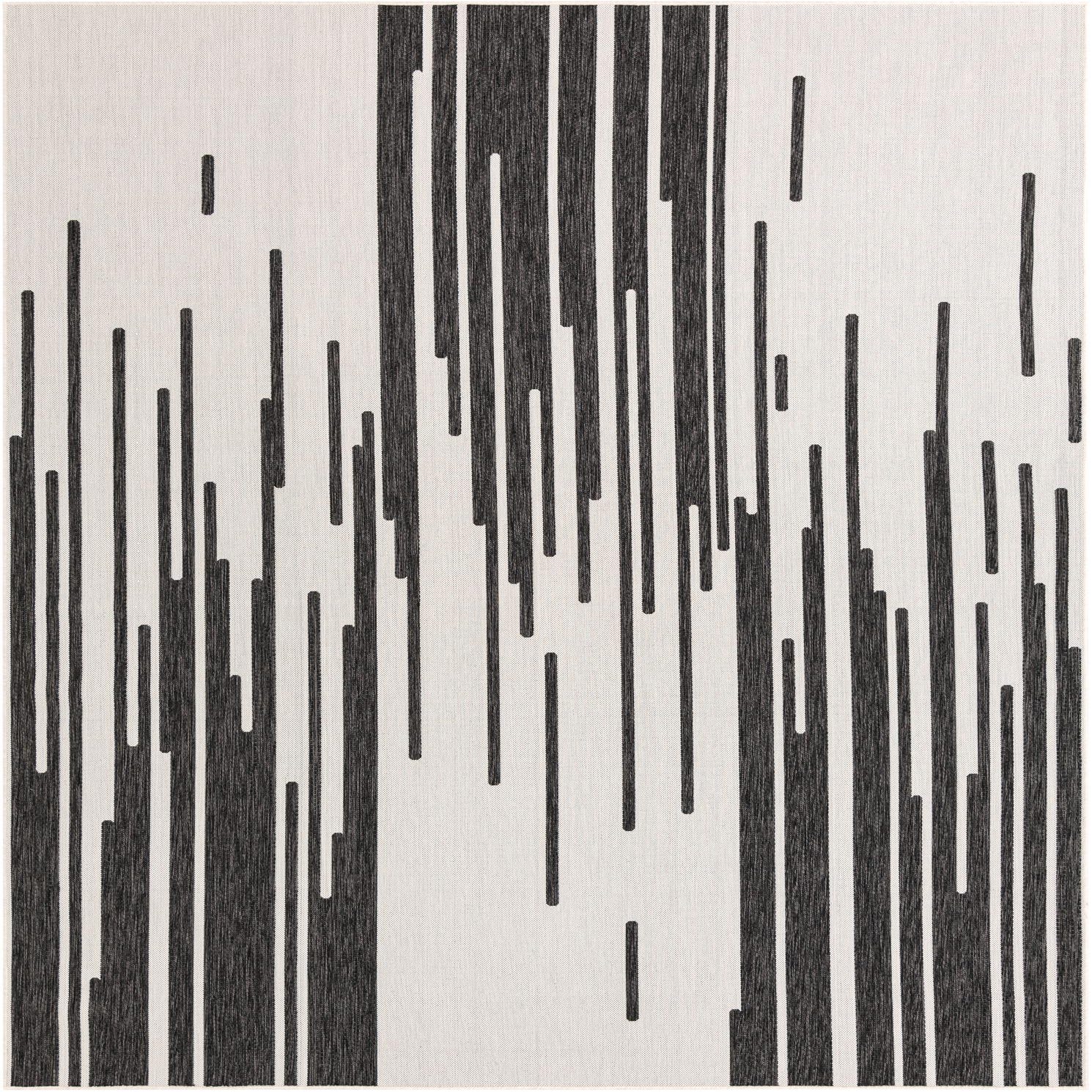 From the Outdoor Modern collection, this 9x12 area rug showcases a contemporary design, featuring an abstract pattern with a harmonious blend of black and white hues. The dynamic arrangement of linear brushstroke-like elements creates a sense of movement, adding a striking visual touch to any outdoor space.