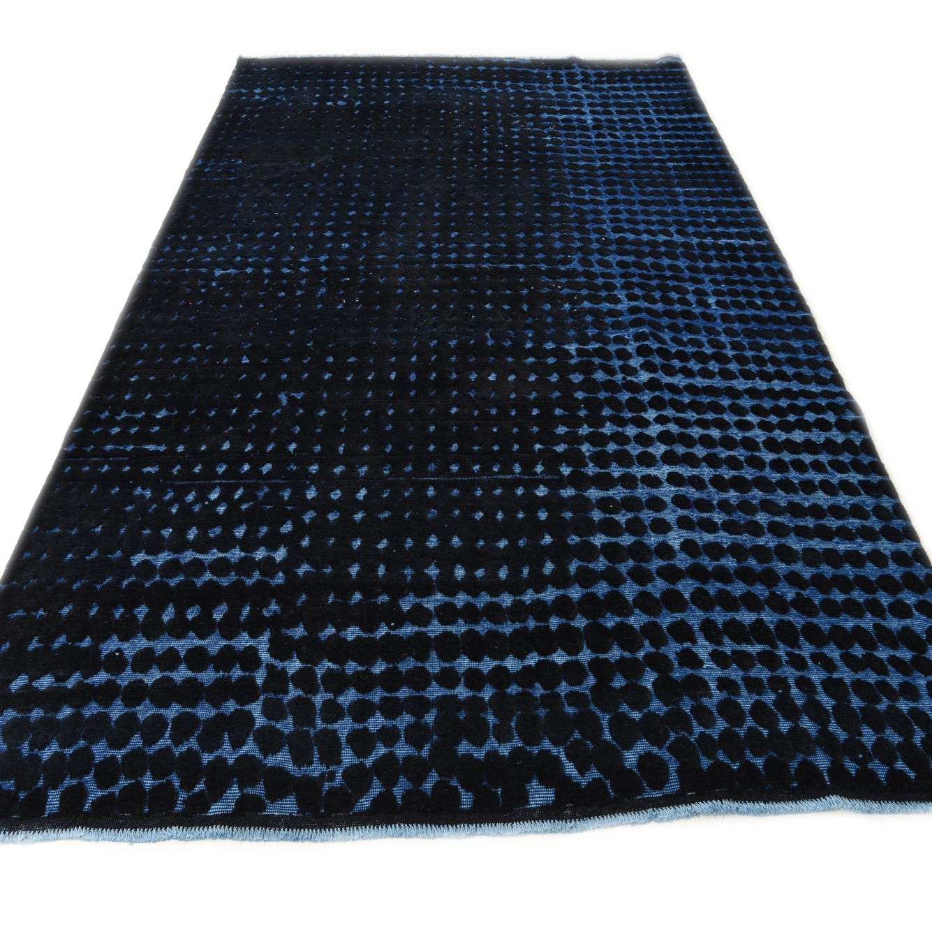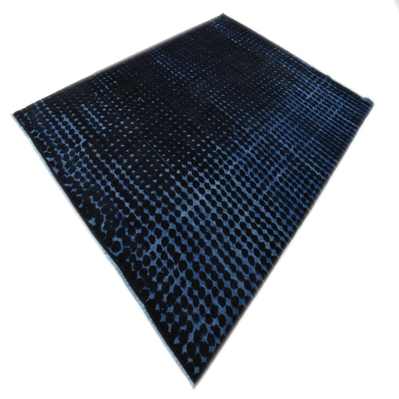 8x10 rectangular Darya rug with a modern abstract pattern in black and blue, featuring a textured pile.