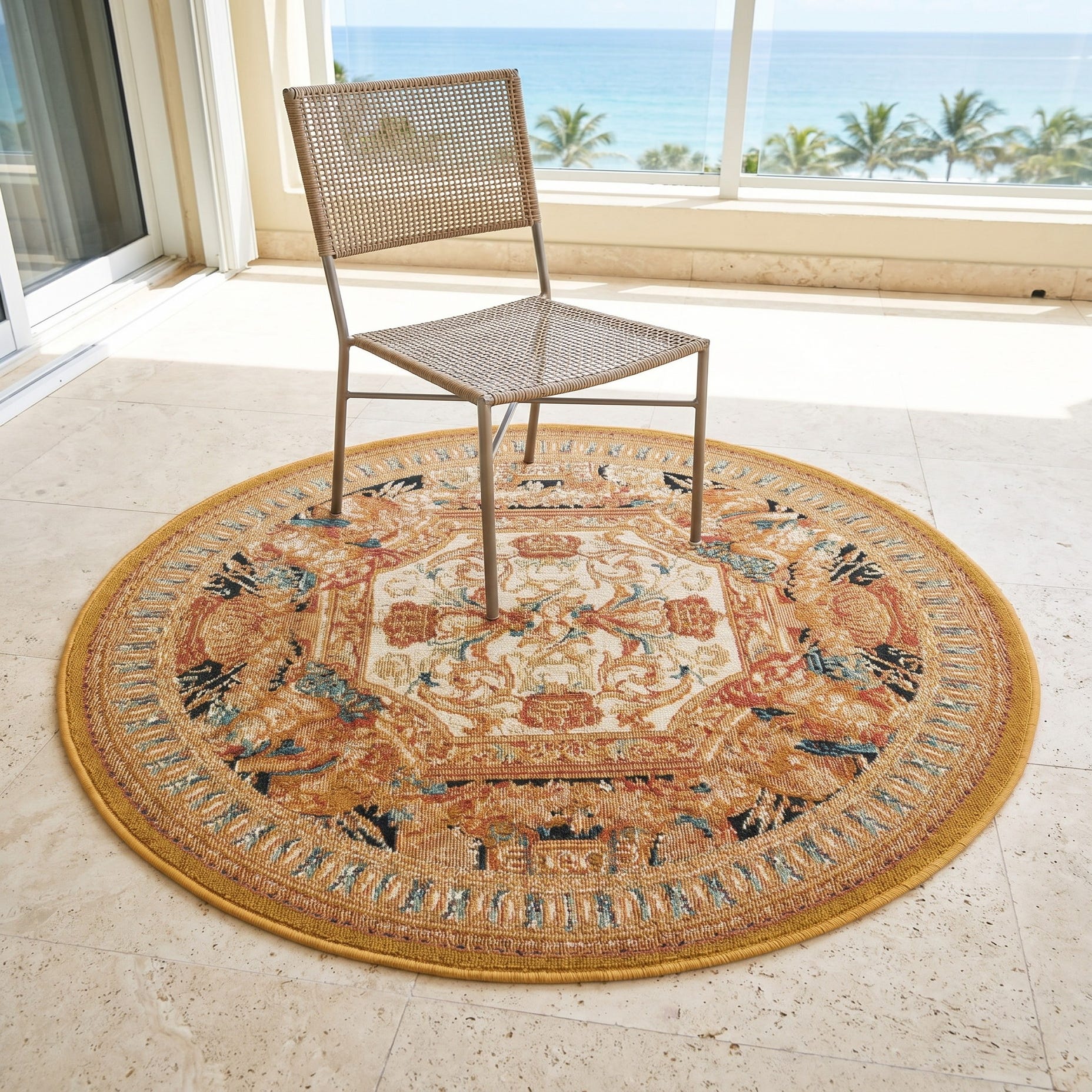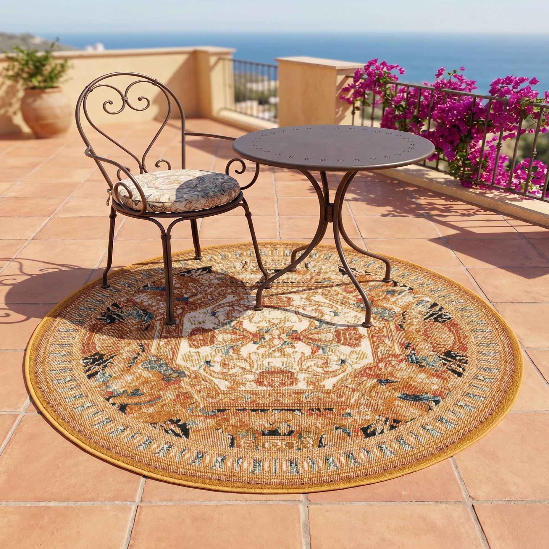 3' 3 x 3' 3 Easy-Clean Traditional Indoor / Outdoor Round Rug