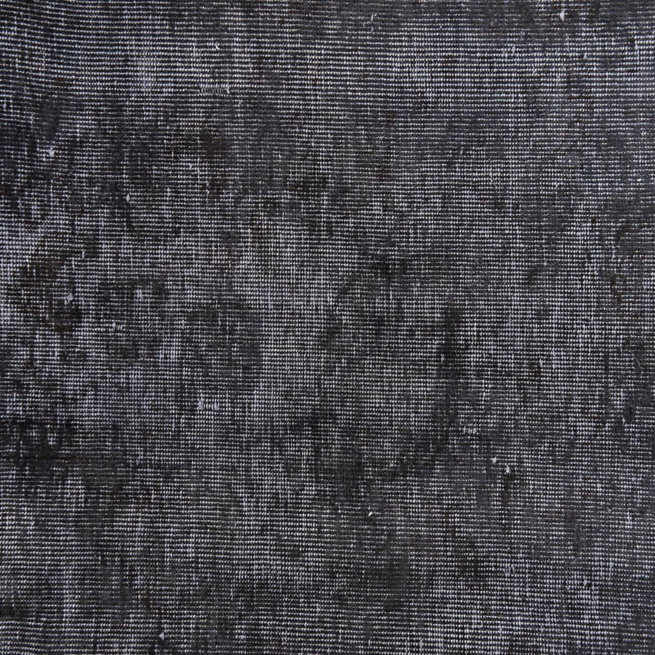 A large 10x12 rectangular black and gray vintage Persian wool rug with a distressed, abstract pattern.