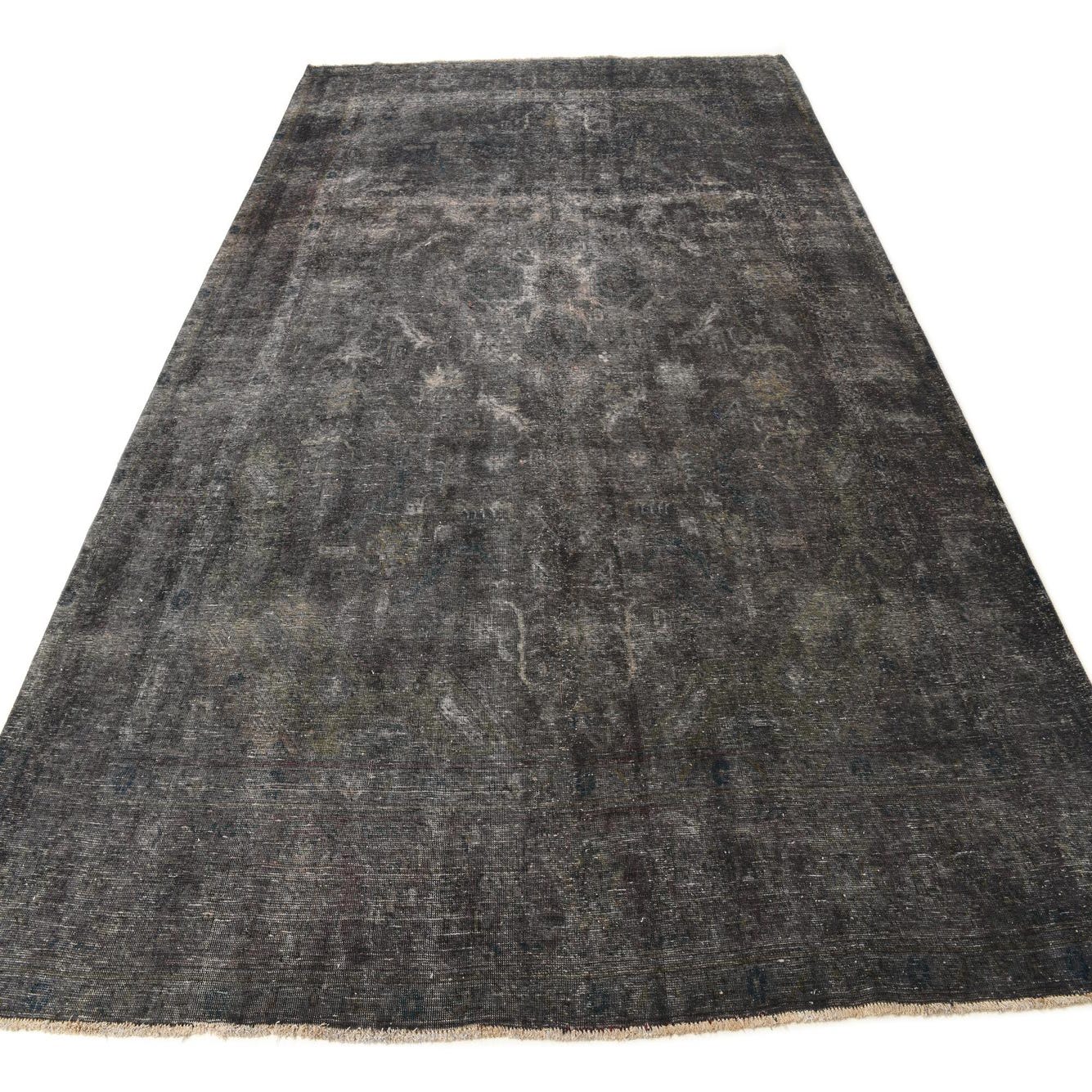 This Persian Ultra Vintage rug is an antique Persian Rug that has been washed, over-dyed, and then shaved down to a low pile. Look at the detail pictures to fully appreciate the uniqueness of this piece.