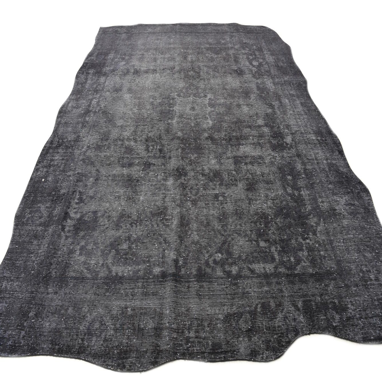 The rug features an intricate pattern reminiscent of classic vintage designs, with a modern monochromatic palette that gracefully blends shades of black and gray. The subtle variation of tones overlaid with a faint traditional motif makes this rug versatile while imparting depth and an aged sophistication.